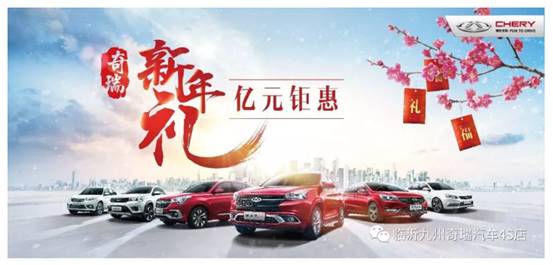 瑞雪豐年年味濃,值此2018新春佳節(jié)來臨之際,為回饋600萬車主的支持與厚愛,奇瑞汽車特別隆重推出【億元鉅惠】新年禮,打造更精彩的新年盛惠的同時(shí),為火爆的新春車市再添一把紅火!