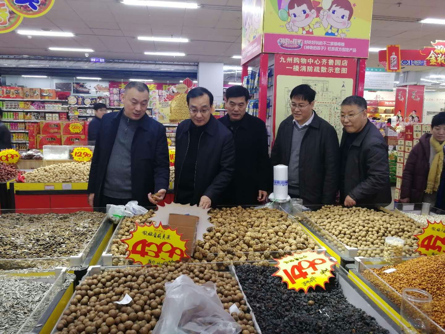 2月14日上午,市商務(wù)局局長(zhǎng)吳昌力、副調(diào)研員李玉海帶隊(duì),到九州購(gòu)物中心齊魯園店視察節(jié)日物資供應(yīng)情況,并進(jìn)行了現(xiàn)場(chǎng)指導(dǎo),集團(tuán)董事長(zhǎng)兼總經(jīng)理?xiàng)钣罇|陪同。 吳昌力一行重點(diǎn)查看了酒水、調(diào)味品、干果等節(jié)日商品的供應(yīng)情況,詳細(xì)了解了米、面、油、菜等民生商品的備貨情況,并對(duì)重要產(chǎn)品追溯系統(tǒng)的運(yùn)行情況進(jìn)行了檢查。吳昌力對(duì)購(gòu)物中心齊魯園店在應(yīng)對(duì)節(jié)日期間市場(chǎng)需求方面所做的各項(xiàng)工作給予了充分肯定。(九州購(gòu)物中心齊魯園店 梁兵)