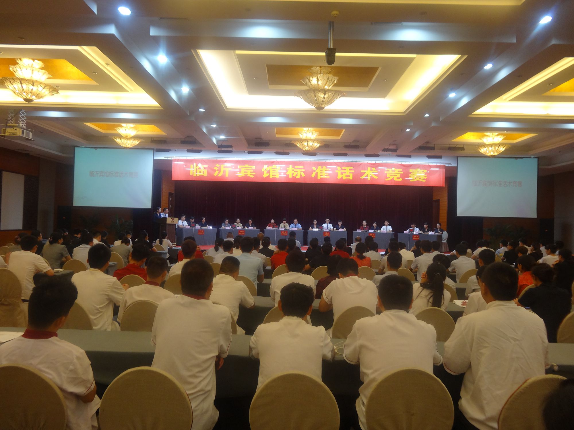 7月31日下午,臨沂賓館標準話術(shù)競賽在沂蒙路店第一會議室成功舉行。經(jīng)過激烈的角逐,最終沂蒙路店1號代表隊獲得冠軍,開發(fā)區(qū)店1號代表隊、沂蒙路店2號代表隊分獲二三名。 本次比賽共分為必答題、搶答題、情景模擬三個部分,每個分店派出兩隊參賽選手,每隊三人。選手通過搶答器進行作答,并顯示實時得分。情景模擬環(huán)節(jié),由不同小組成員分飾顧客和員工,通過員工對突發(fā)情況的處理由評委組對其進行打分。 標準話術(shù)在酒店對客服務中尤為重要,本次標準話術(shù)競賽選取餐飲、客房、會議等酒店三大主要產(chǎn)品在服務過程中的服務用語為題目,制定在各種場景下的標準服務話術(shù),讓全體員工都能熟練掌握標準服務用語,并通過情景模擬,展示在各種突發(fā)情況下的處理方式,引發(fā)大家的思考,并應用到實際工作中。 本次標準話術(shù)競賽的成功舉辦,有效提高了員工在對客服務過程中使用標準話術(shù)的意識,對于臨沂賓館標準話術(shù)體系的建立有著重要的意義,各部門也將以此次活動為契機,加強對標準話術(shù)的培訓和應用,并在實際工作中不斷檢驗和完善,努力夯實服務基礎(chǔ),不斷提高服務質(zhì)量。(臨沂賓館辦公室 王本強)
