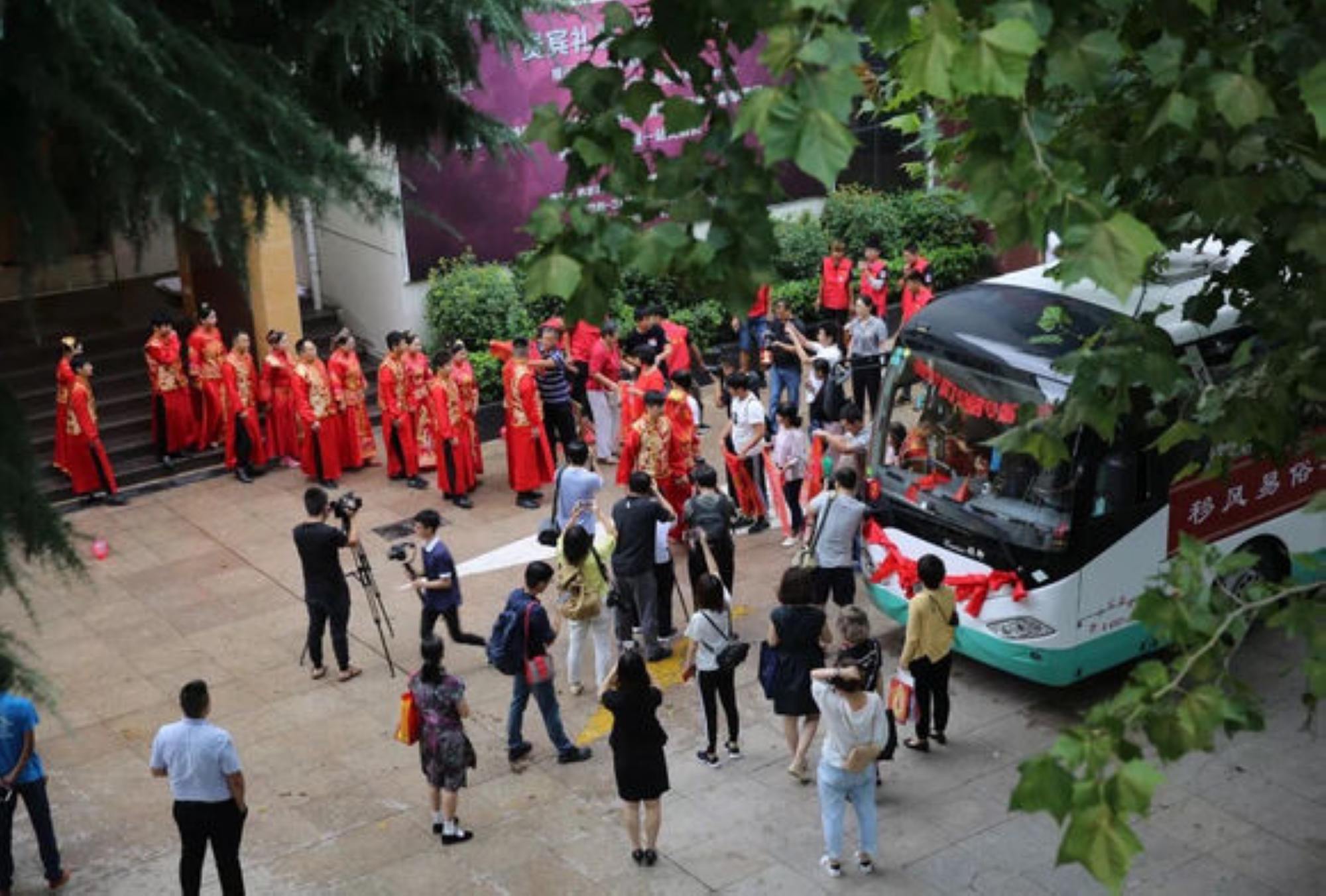 由蘭山區(qū)委宣傳部、共青團(tuán)蘭山區(qū)委、蘭山區(qū)文聯(lián)、蘭山區(qū)婦聯(lián)、蘭山區(qū)民政局、蘭山區(qū)旅游局主辦,汪溝鎮(zhèn)人民政府、山東雙和集團(tuán)、江花集團(tuán)承辦的蘭山區(qū)首屆集體婚禮于2018年8月19日從臨沂賓館沂蒙路店發(fā)嫁,在蘭山區(qū)雙和農(nóng)莊隆重舉行。 早上5點(diǎn)至7點(diǎn),新人們?cè)谂R沂賓館沂蒙路店進(jìn)行了化妝和婚禮前的準(zhǔn)備,7點(diǎn)左右,新人們?cè)谂e行完傳統(tǒng)的發(fā)嫁儀式之后,集體乘坐大巴車前往婚禮場(chǎng)地——蘭山區(qū)雙和農(nóng)莊。 臨沂賓館作為此次集體婚禮的發(fā)嫁地,免費(fèi)為新人們提供了舒適的場(chǎng)地和貼心的服務(wù),十對(duì)新人的幸福之旅從這里啟程,臨沂賓館是實(shí)實(shí)在在的“大喜之地”。(臨沂賓館沂蒙路店綜合辦 劉云蒙)