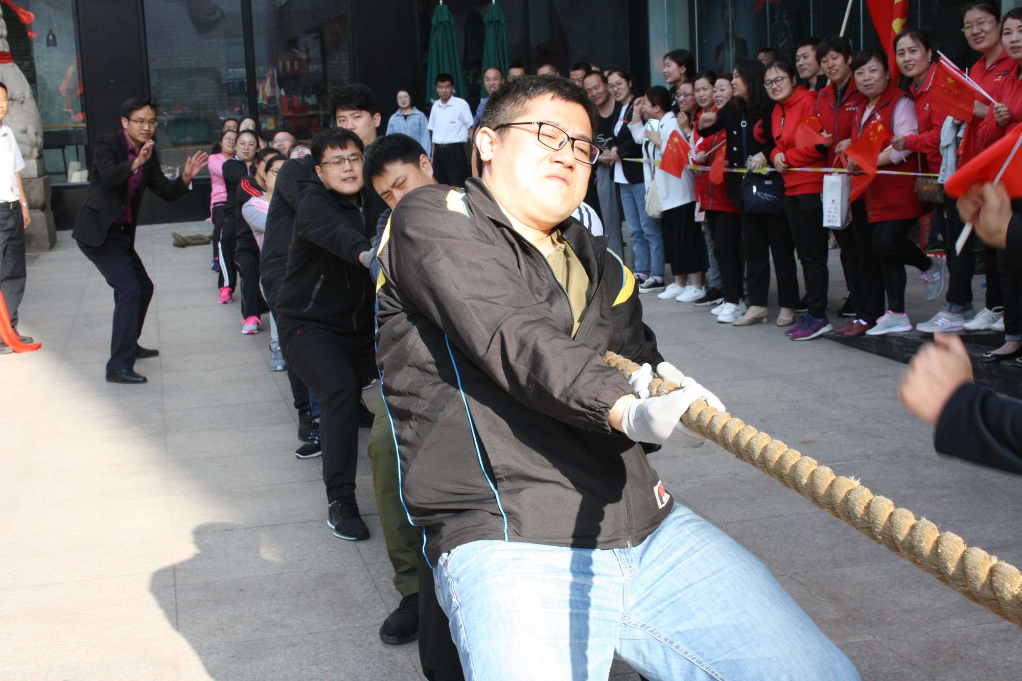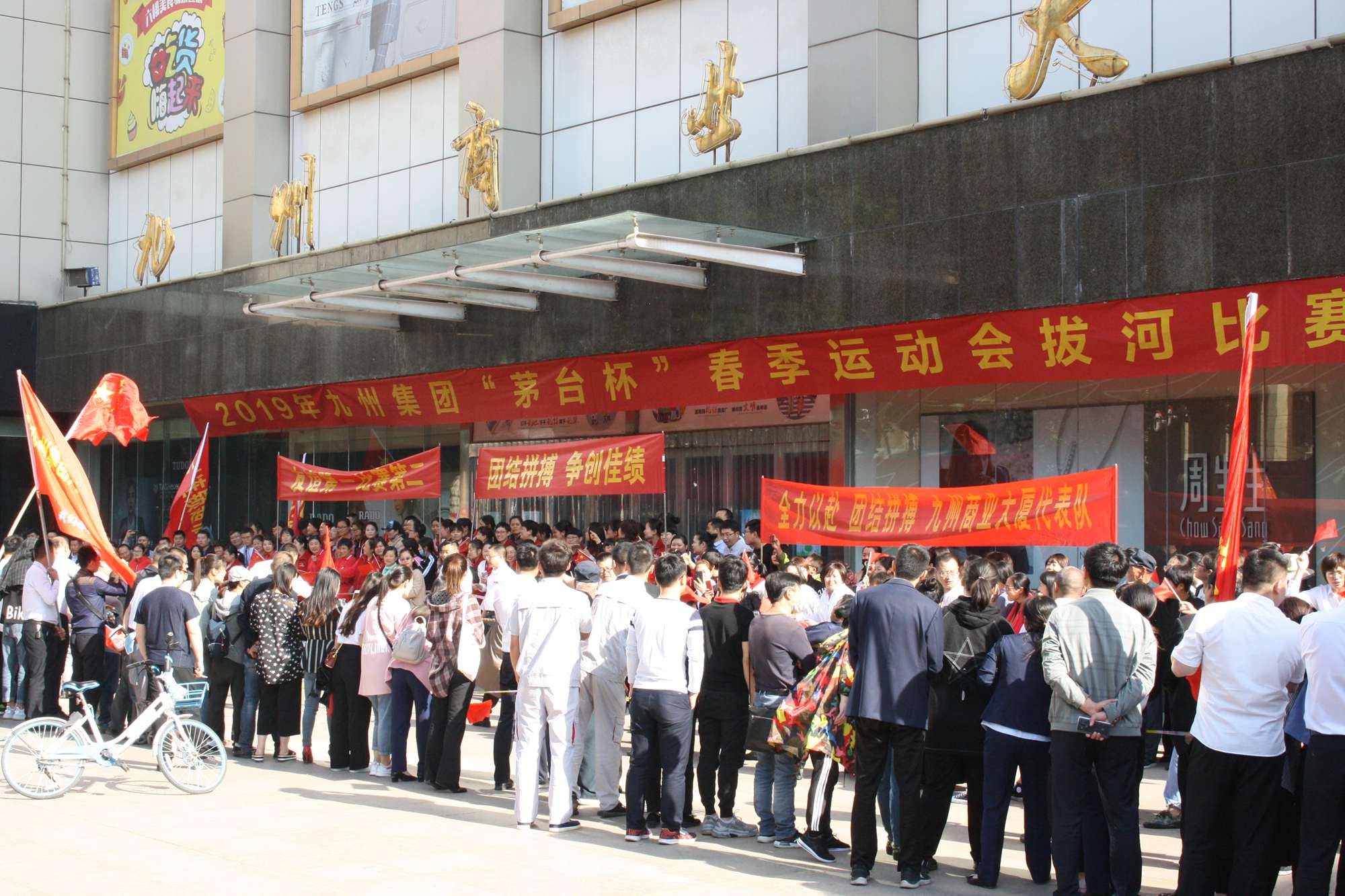 5月21日上午,九州集團2019年運動會拔河比賽項目在九州大廈解放路店門前廣場舉行。來自各經營單位和集團行政的六支代表隊參加了比賽。 整潔的街道,翠綠的樹木,清晨的城市少了喧嘩,多了一份安靜,此刻九州大廈門前廣場卻熱鬧非凡,比賽現(xiàn)場被激昂的標語環(huán)繞,每個人都熱情高漲。比賽尚未開始時,雙方參賽隊員就已經進入了戰(zhàn)斗狀態(tài),雙手緊握麻繩,雙腳用力著地,身體向后微傾,齊心協(xié)力擰成了一股繩。哨聲一響,雙方口號震天,有的隊員臉憋得通紅卻絲毫不放松,有的隊員干脆閉上眼睛卯足了勁兒往后拉。場下的啦啦隊也不甘落后,加油聲、吶喊聲、助威聲響徹四周。經過多輪比拼,臨沂賓館代表隊憑借強大的實力,嫻熟的比賽技術奪得冠軍,九州大廈代表隊和超市公司代表隊分獲亞軍和季軍,汽貿公司代表隊、九州家電代表隊和集團行政代表隊分獲第四、五、六名。(文/劉文靜)