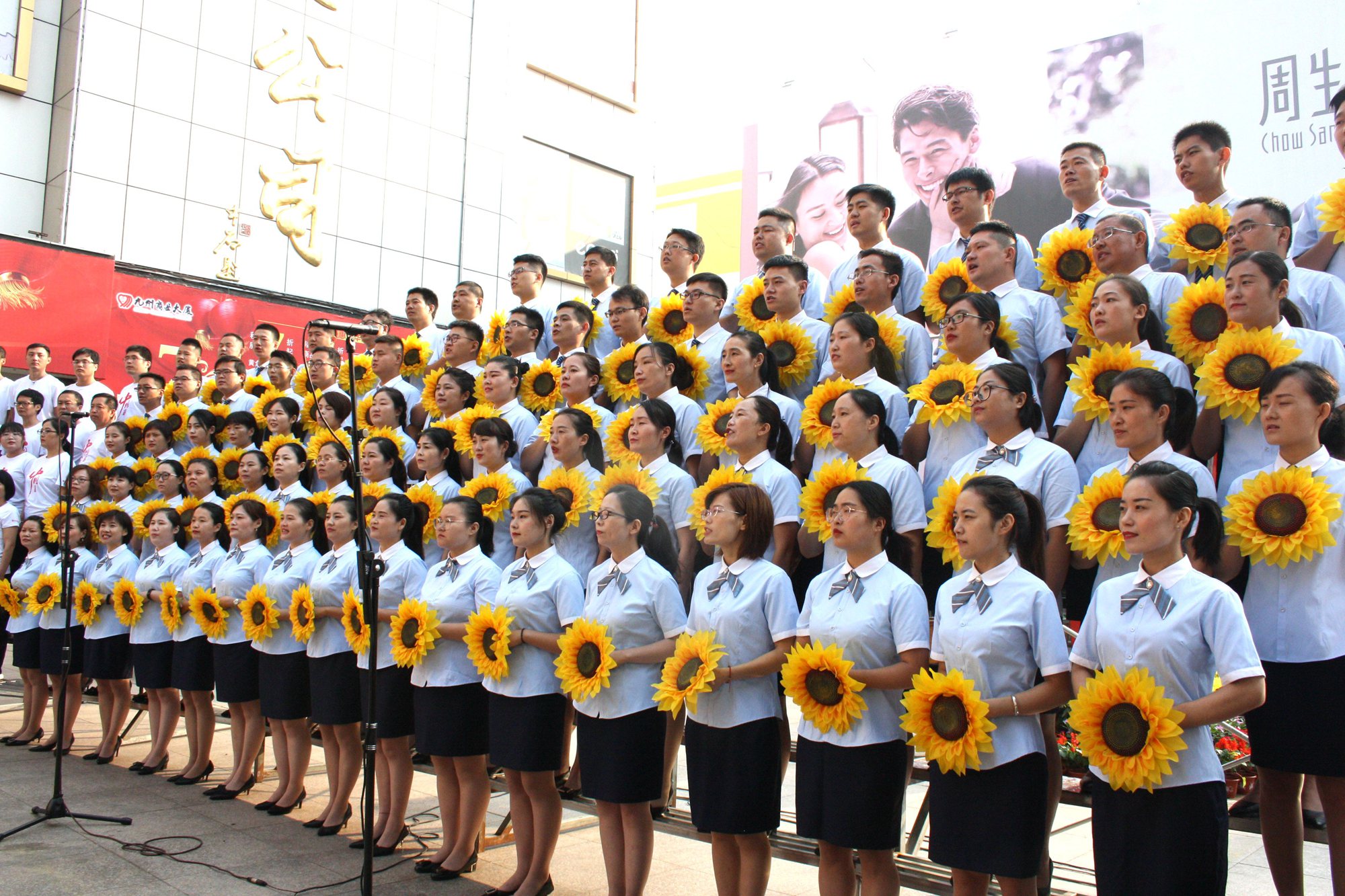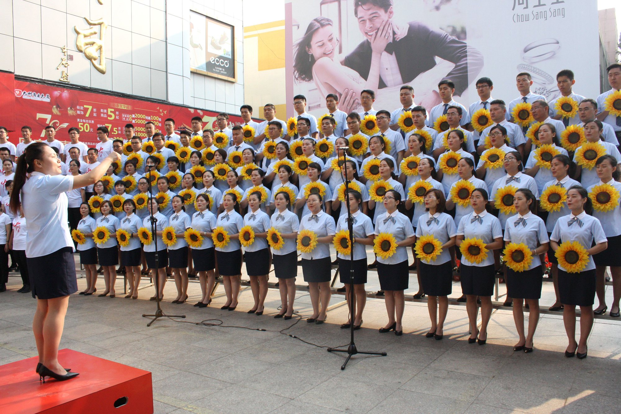 躬逢新時(shí)代,頌歌獻(xiàn)祖國(guó)。9月30日早上,集團(tuán)在九州商業(yè)大廈門(mén)前廣場(chǎng)舉辦慶祝新中國(guó)成立70周年歌詠比賽,來(lái)自各經(jīng)營(yíng)單位和集團(tuán)行政處室的六支代表隊(duì)共計(jì)450余人參加了比賽。 余音繞梁,群情激昂,或雄壯,或深情,或火熱,或沉醉,六支代表隊(duì)用動(dòng)聽(tīng)的歌聲直抒對(duì)祖國(guó)的滿(mǎn)腔熱愛(ài),展現(xiàn)新時(shí)代九州人深厚的愛(ài)國(guó)情懷。“起來(lái),不愿做奴隸的人們,把我們的血肉筑成我們新的長(zhǎng)城……”比賽伊始,舉行升國(guó)旗儀式,伴隨著緩緩升起的五星紅旗,六支代表隊(duì)齊唱國(guó)歌,斗志昂揚(yáng)。隨后,全體大合唱《九州集團(tuán)之歌》更加彰顯了九州員工蓬勃向上、意氣風(fēng)發(fā)的精神風(fēng)貌。本次比賽,每支代表隊(duì)演唱兩首參賽曲目,以歌詠志、以歌抒懷。《祖國(guó)頌》《我和我的祖國(guó)》《保衛(wèi)黃河》《大中國(guó)》《沒(méi)有共產(chǎn)黨就沒(méi)有新中國(guó)》《歌唱祖國(guó)》《不忘初心》《我愛(ài)你中國(guó)》《祖國(guó)不會(huì)忘記》《愛(ài)我中華》等一首首膾炙人口的歌曲陸續(xù)唱響,唱出了九州人對(duì)祖國(guó)母親的無(wú)限熱愛(ài)和美好祝福。嘹亮的歌聲在現(xiàn)場(chǎng)久久回蕩,吸引了越來(lái)越多的行人駐足觀看,現(xiàn)場(chǎng)響起一陣又一陣的掌聲。比賽的最后,所有參賽隊(duì)員及現(xiàn)場(chǎng)觀眾在指揮老師的統(tǒng)一指揮下,共同唱響《歌唱祖國(guó)》,“五星紅旗迎風(fēng)飄揚(yáng),勝利歌聲多么嘹亮,歌唱我們親愛(ài)的祖國(guó),從今走向繁榮富強(qiáng)……”熟悉的旋律伴隨著飄揚(yáng)的五星紅旗,將現(xiàn)場(chǎng)的氣氛推向高潮,本次比賽圓滿(mǎn)落下帷幕。 同唱愛(ài)國(guó)歌,共筑九州夢(mèng)。當(dāng)下,九州人將青春與熱血融入旋律,將情懷與夢(mèng)想融入歌聲,獻(xiàn)禮祖國(guó)。而今后,九州人將繼續(xù)緊隨偉大祖國(guó)發(fā)展步伐,不忘初心,砥礪奮進(jìn),再創(chuàng)事業(yè)新輝煌。(文/劉文靜)