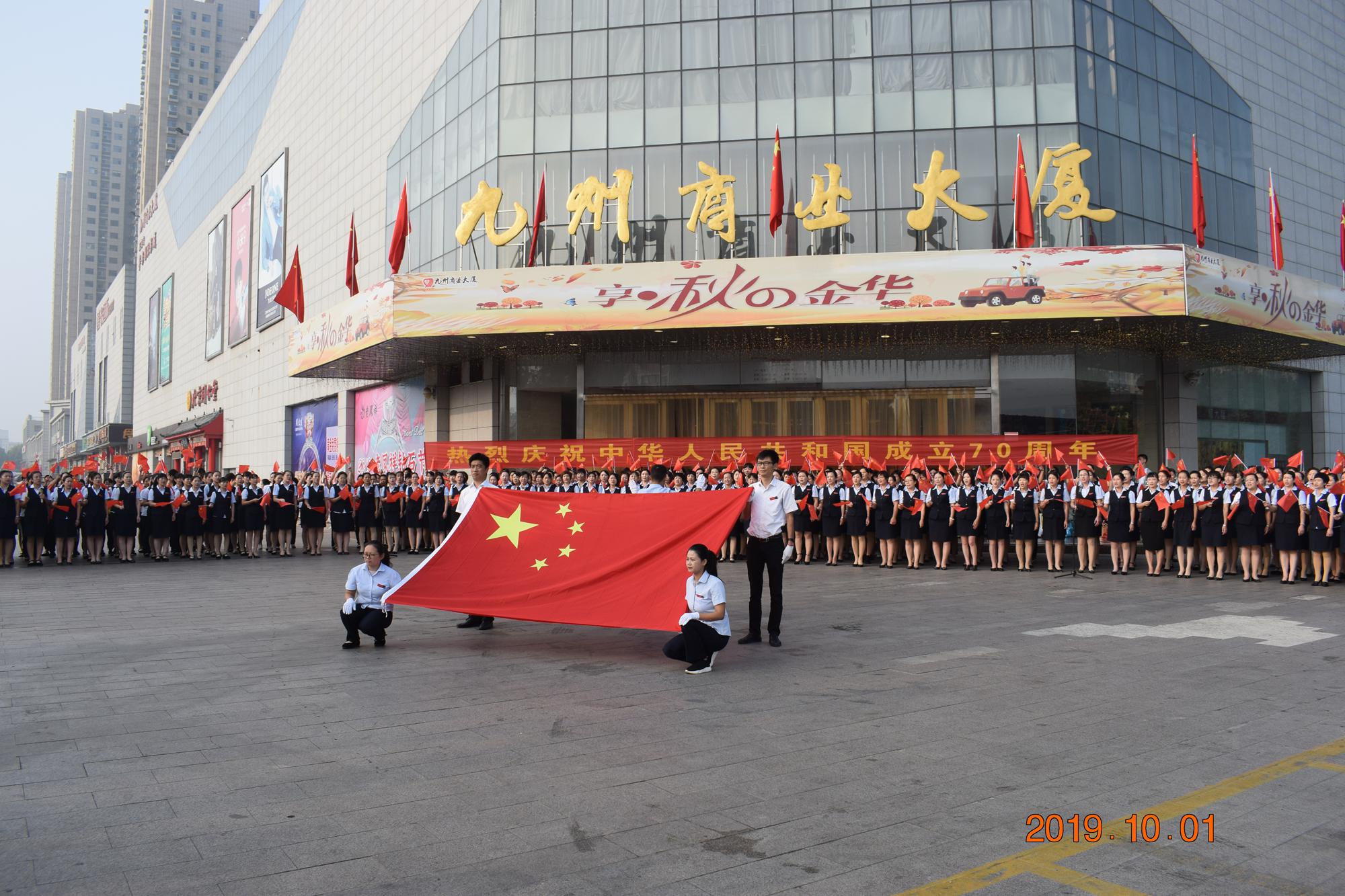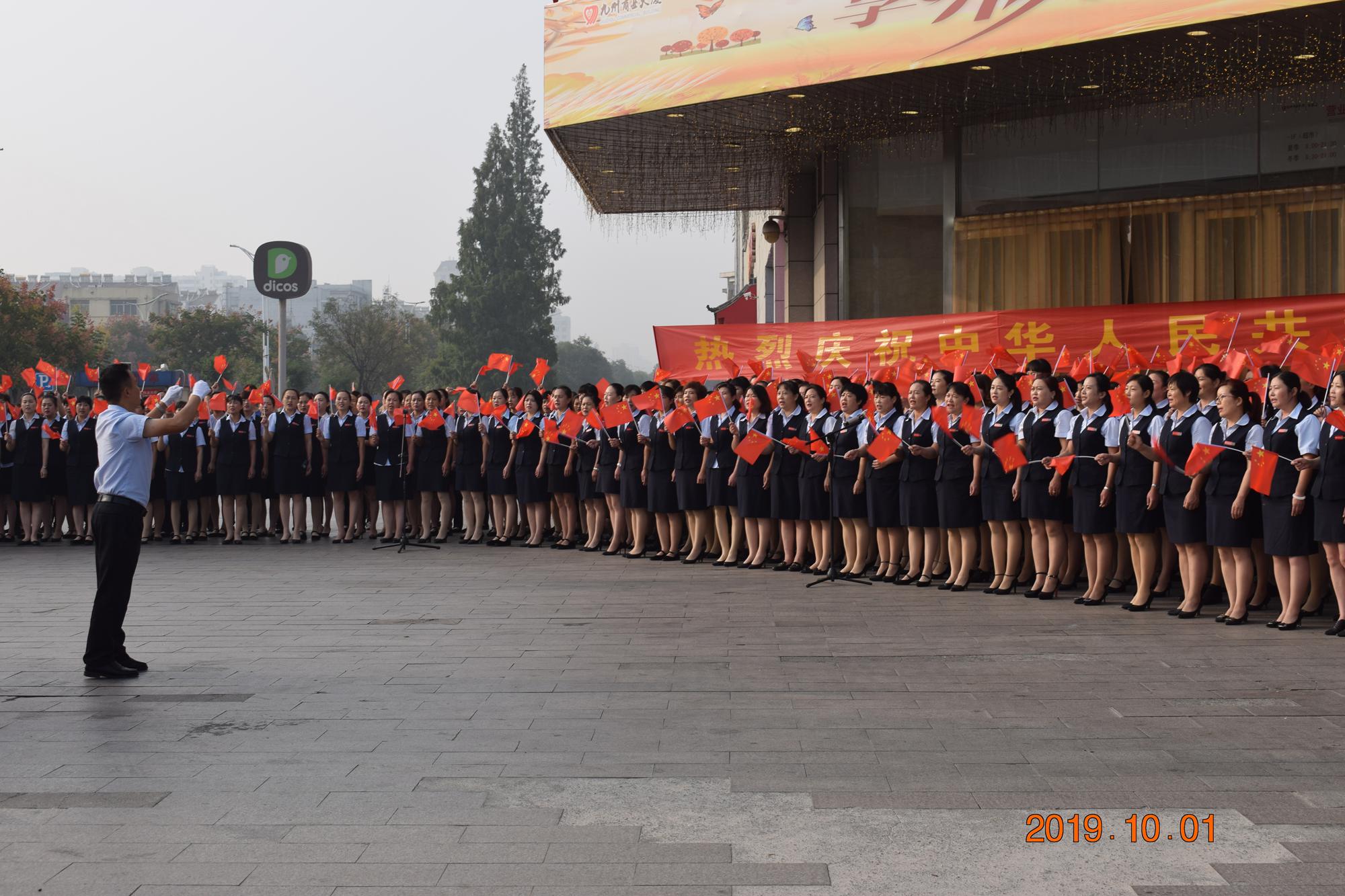 禮樂光輝盛,山河氣象新。躬逢新時(shí)代,頌歌獻(xiàn)祖國。 10月1日上午,九州商業(yè)大廈沂水區(qū)域門店分別在各店門前廣場(chǎng)舉行了慶國慶合唱活動(dòng)。先后合唱了《我和我的祖國》、《九州集團(tuán)之歌》等歌曲。 同唱愛國歌,共筑九州夢(mèng)。歌聲唱出了九州人對(duì)祖國母親的無限熱愛和美好祝福,唱出了九州人團(tuán)結(jié)奮進(jìn)、勇往直前的豪氣。這就是在世界東方生機(jī)盎然的中國,這就是在紅色沂蒙大地上蒸蒸日上的九州。(文圖/黃明濤)
