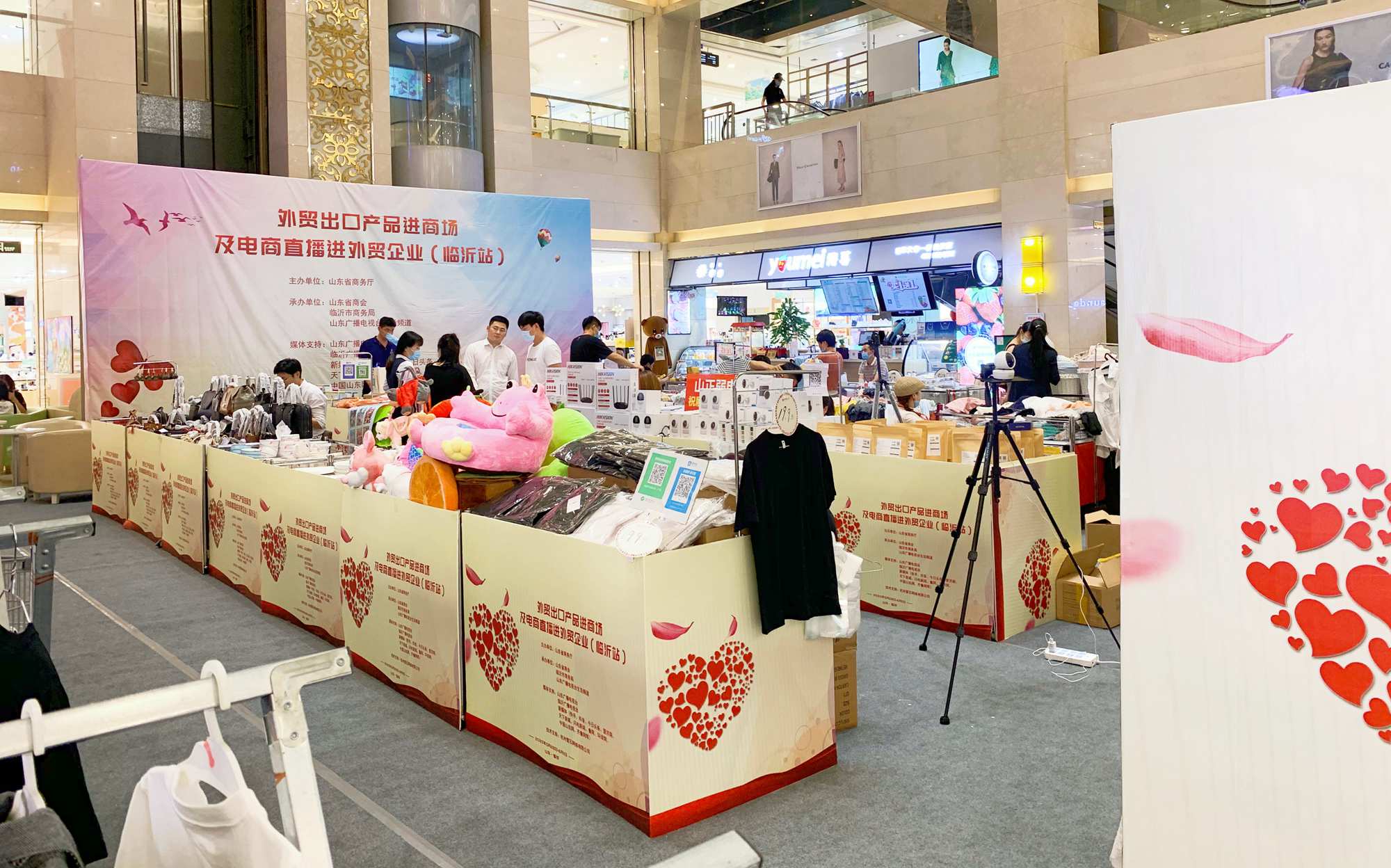 5月28日至6月1日,由山東省商務(wù)廳主辦,山東省商會(huì)、臨沂市商務(wù)局、山東廣播電視臺(tái)生活頻道承辦的“外貿(mào)出口產(chǎn)品進(jìn)商場(chǎng)及電商直播進(jìn)外貿(mào)企業(yè)”活動(dòng)在九州商業(yè)大廈一樓中庭舉行。