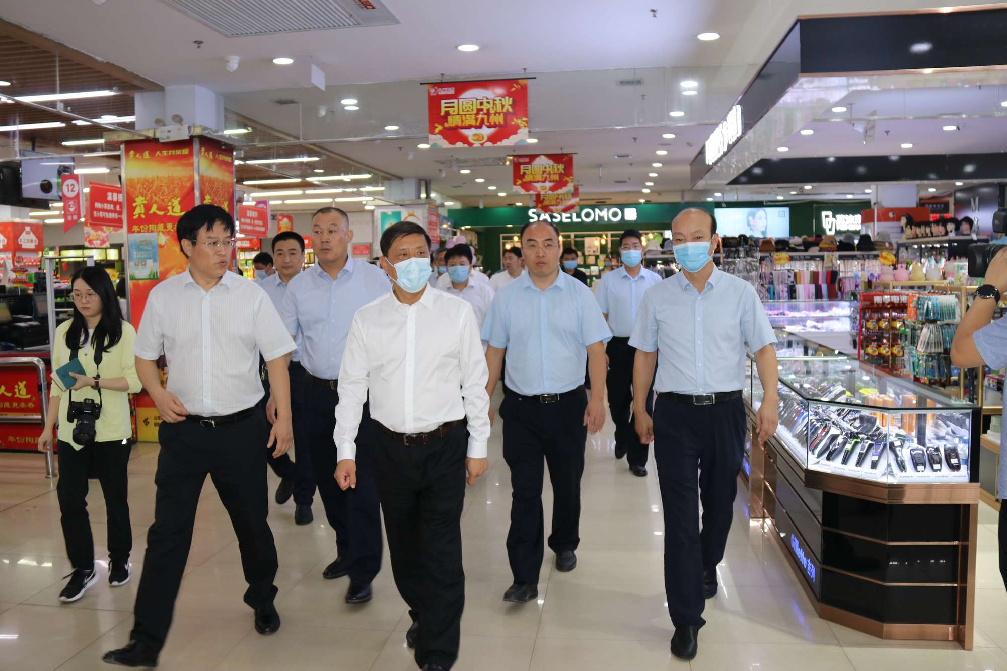9月29日上午,臨沂市委書記王安德到九州購物中心齊魯園店檢查節(jié)日食品安全工作。副市長劉賢軍,市商務(wù)局黨組書記、局長張洪永,市市場監(jiān)督管理局黨組書記、局長黃杰陪同。集團(tuán)董事長、總經(jīng)理?xiàng)钣罇|,超市公司總經(jīng)理李國等參加活動(dòng)并匯報(bào)工作。