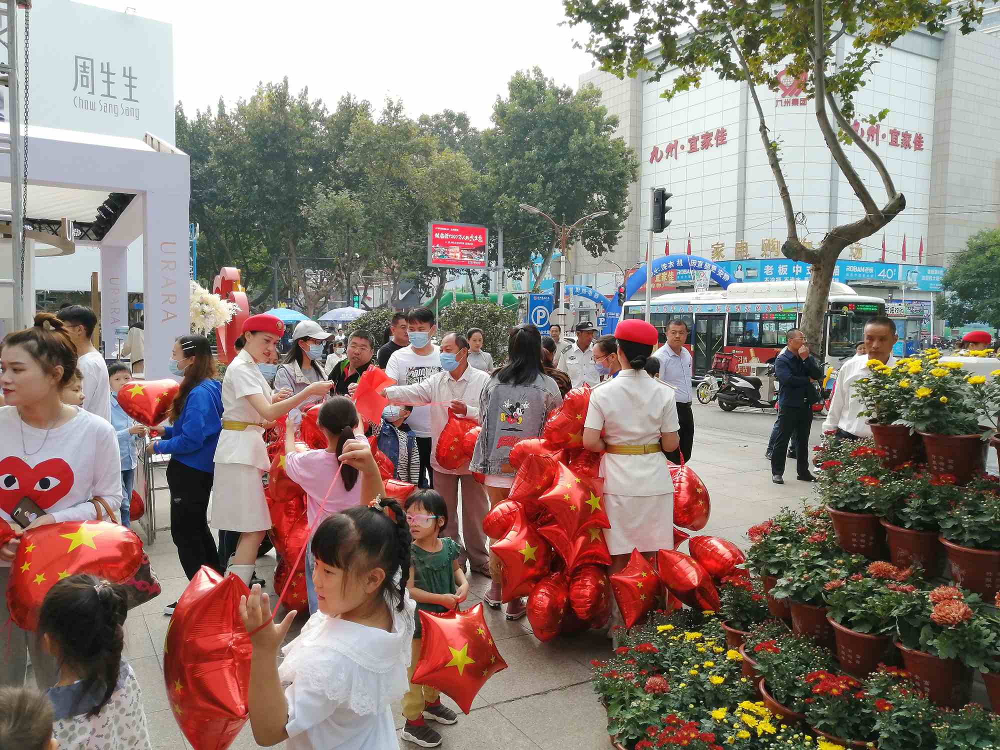活動(dòng)現(xiàn)場(chǎng),九州商業(yè)大廈國(guó)旗班隊(duì)員向經(jīng)過(guò)大廈廣場(chǎng)的行人分發(fā)小紅旗、國(guó)慶氣球及國(guó)慶胸牌,吸引了眾多的行人駐足參與。升旗儀式中,激昂雄壯的《義勇軍進(jìn)行曲》響起,五星紅旗冉冉升起,所有人肅立向國(guó)旗行注目禮,祝福偉大祖國(guó)更加繁榮昌盛、人民生活更加幸福安康。(文/馬瑤 圖/張仲超 劉玉暉)