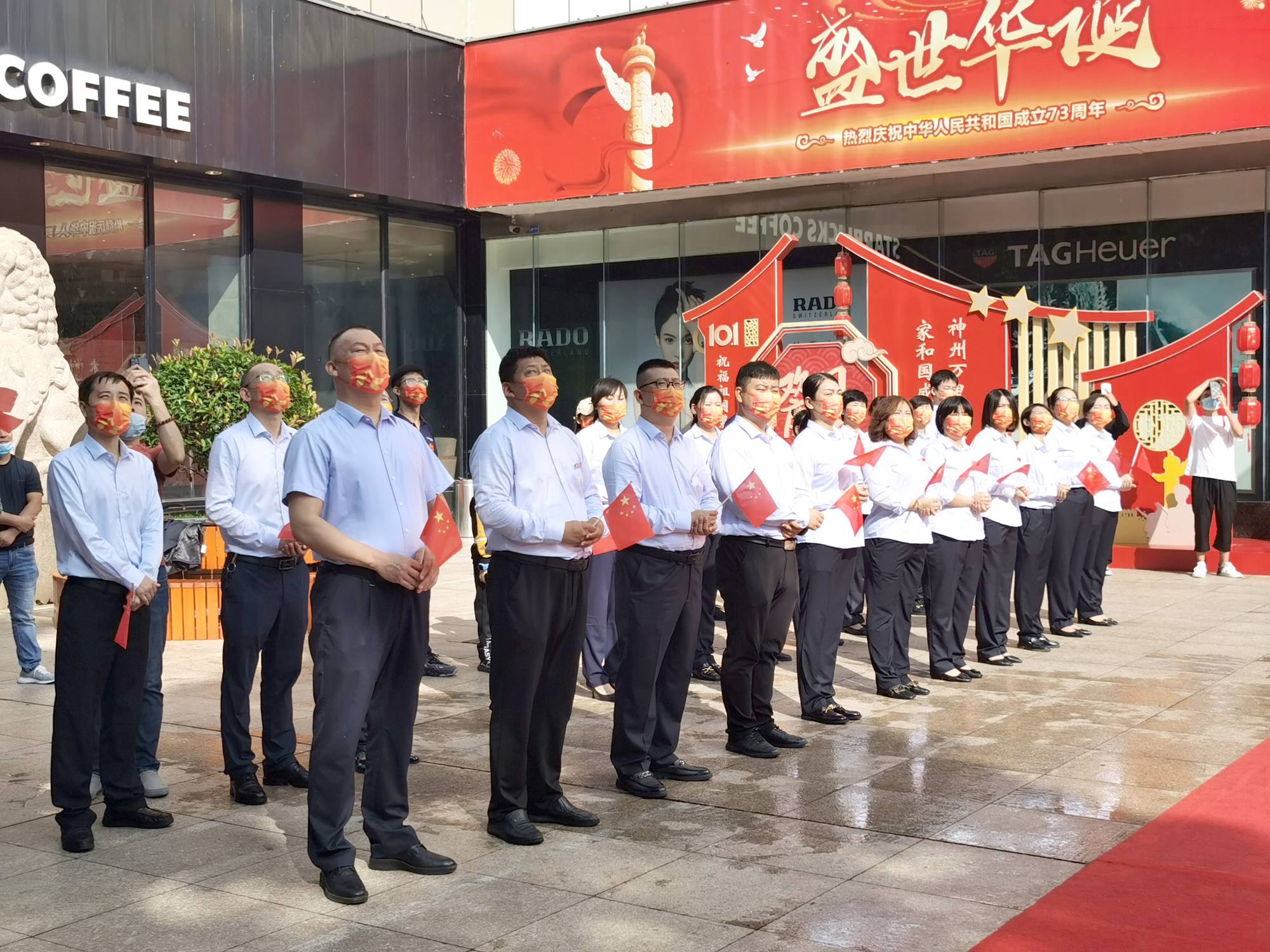 10月1日上午,九州商業(yè)大廈解放路店在門前廣場(chǎng)舉行了升國(guó)旗儀式,部分中層管理人員、主管參加,共同慶祝祖國(guó)成立73周年。