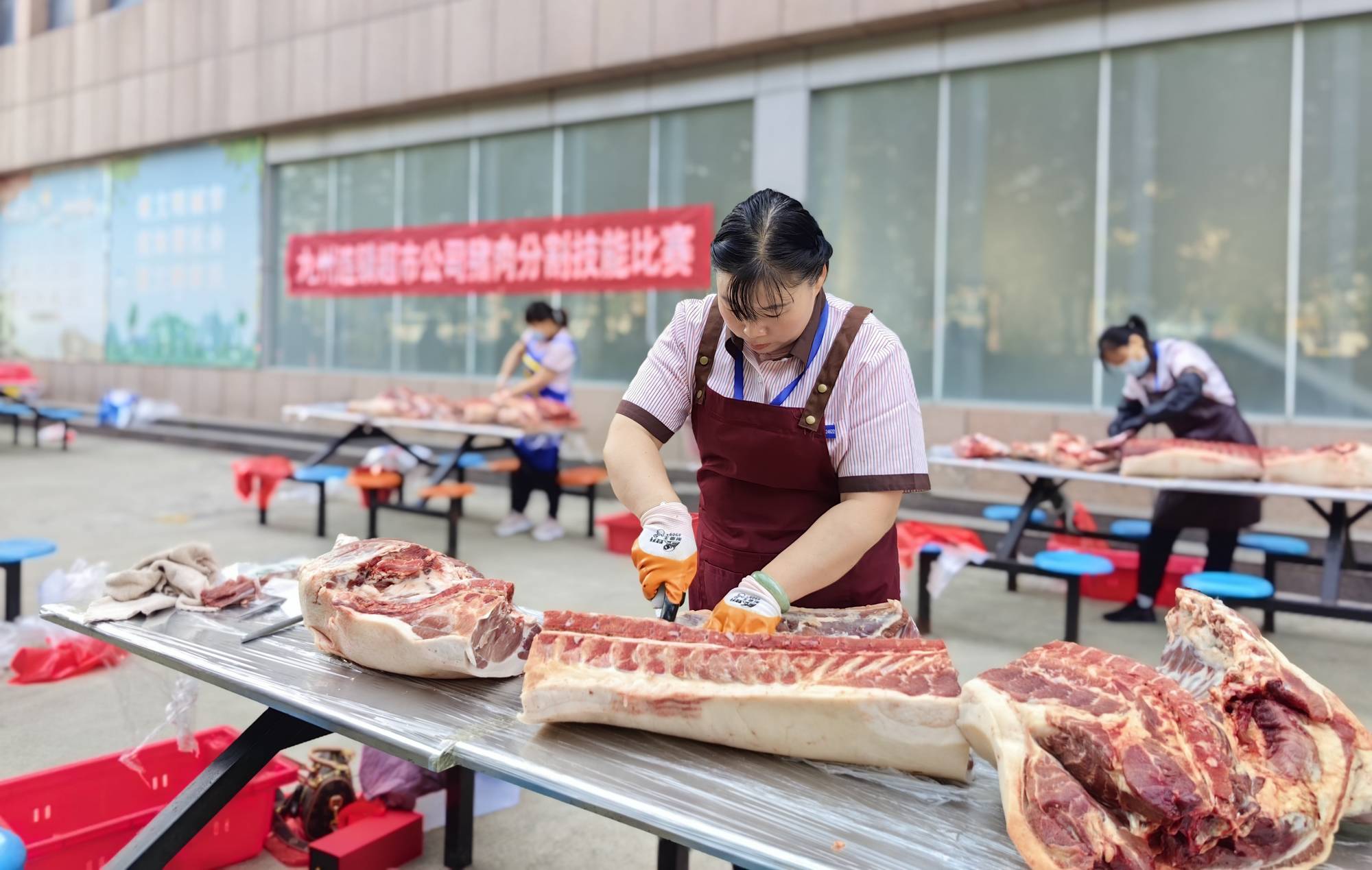 5月16日上午,超市公司在配送中心舉辦豬肉分割技能比賽,超市公司各門店共計34名員工參加。比賽現(xiàn)場,選手根據(jù)比賽要求在盡可能短的時間內(nèi)完成對白條豬的剔骨、分割,考驗(yàn)員工刀工操作的熟練程度和對商品重量的精準(zhǔn)把握。經(jīng)過綜合比拼,購物中心十里坊店沈繡芳獲得第一名,商城店徐坤獲得第二名,購物中心河?xùn)|店劉玉霞獲得第三名。