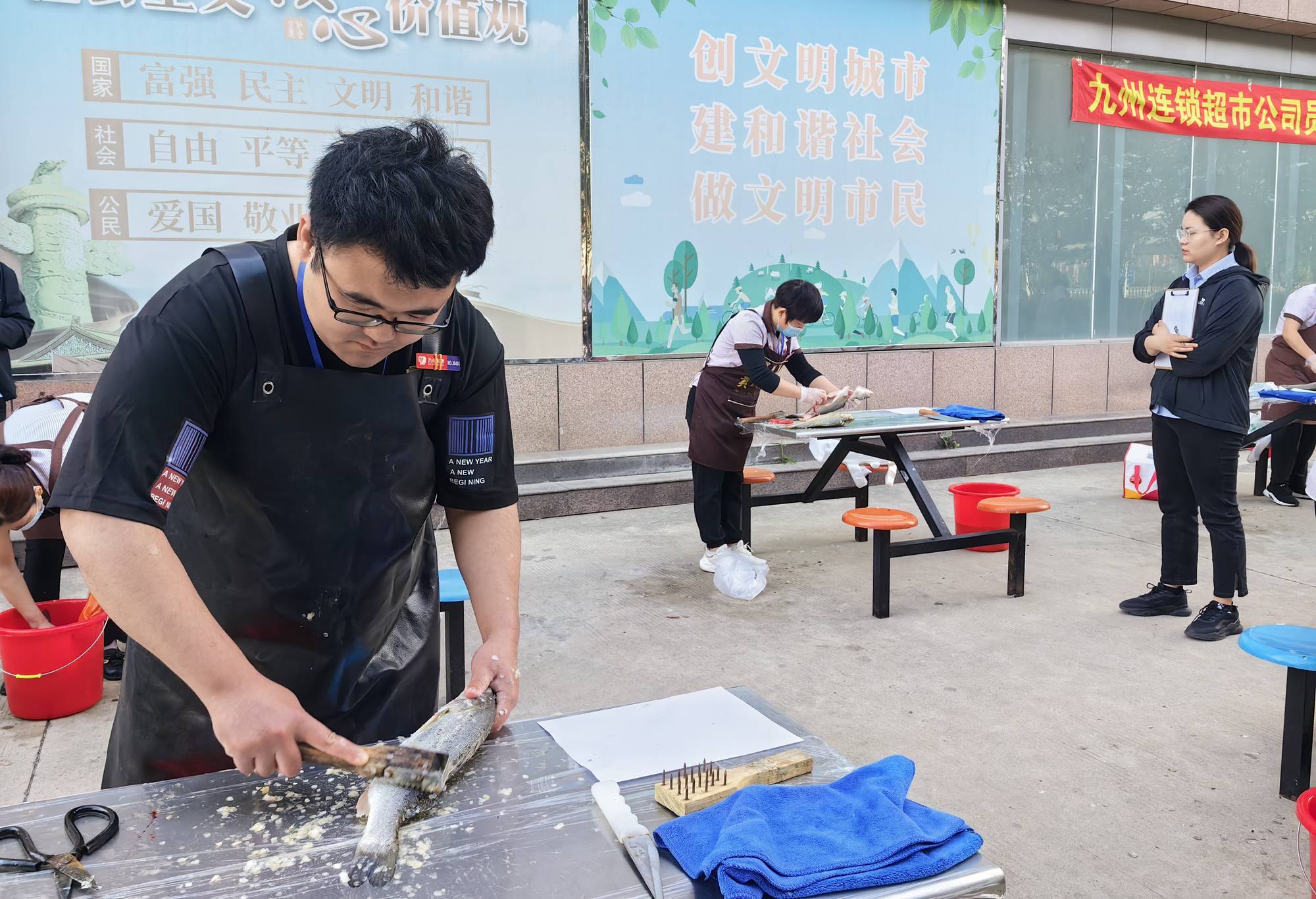 5月17日上午,超市公司在配送中心舉辦了魚宰殺技能比賽,超市公司各門店共計31名員工參加。比賽過程中,選手根據(jù)比賽要求對分配的淡水活魚和冰鮮海魚進(jìn)行宰殺和清理,要求操作流程規(guī)范、臺面衛(wèi)生整潔、商品賣相符合要求,考驗(yàn)了選手靈活敏捷的處理能力和操作的規(guī)范性。經(jīng)過綜合評比,王平莊店李懷梅獲得第一名,月亮灣店劉曉飛獲得第二名,紅旗路店顏丙衛(wèi)獲得第三名。