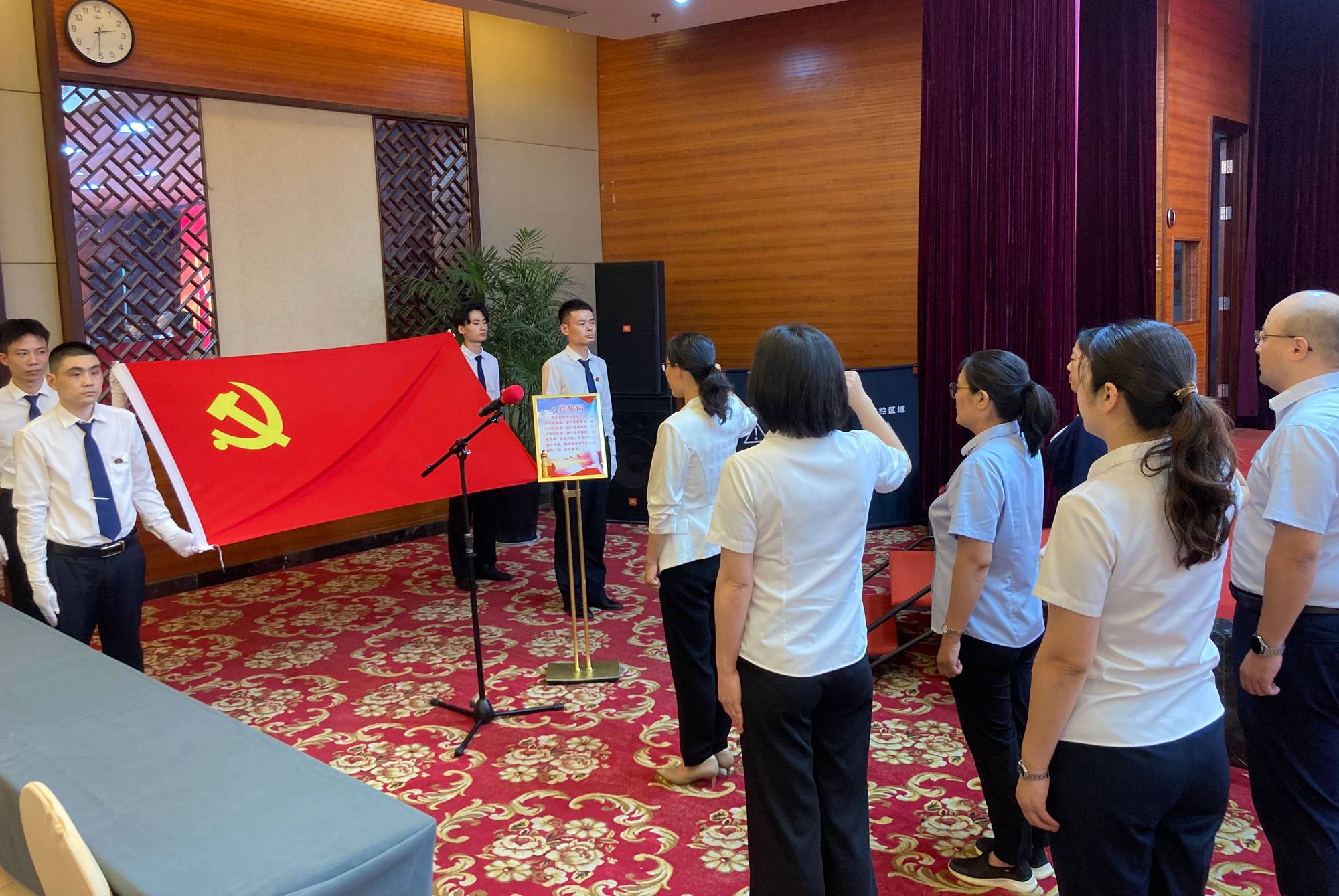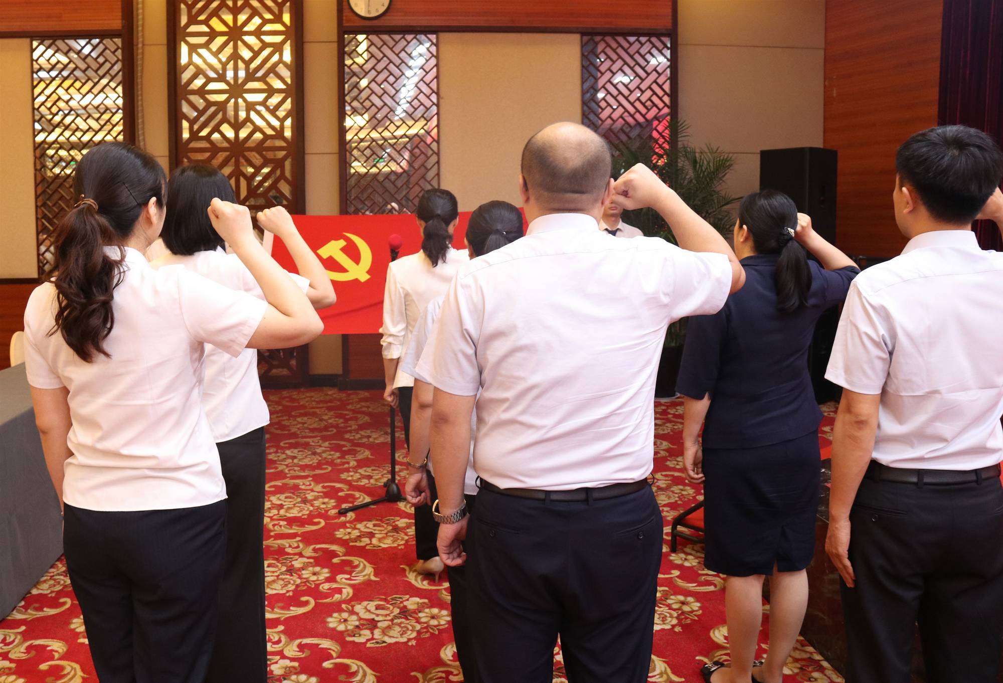會議在雄壯的國歌聲中拉開帷幕。會上,集團(tuán)黨委副書記、紀(jì)委書記王姣帶領(lǐng)集團(tuán)6名新發(fā)展黨員面向黨旗莊嚴(yán)宣誓,錚錚誓言、字字鏗鏘,傳遞著每一位新發(fā)展黨員為黨的事業(yè)奮斗終身的決心。