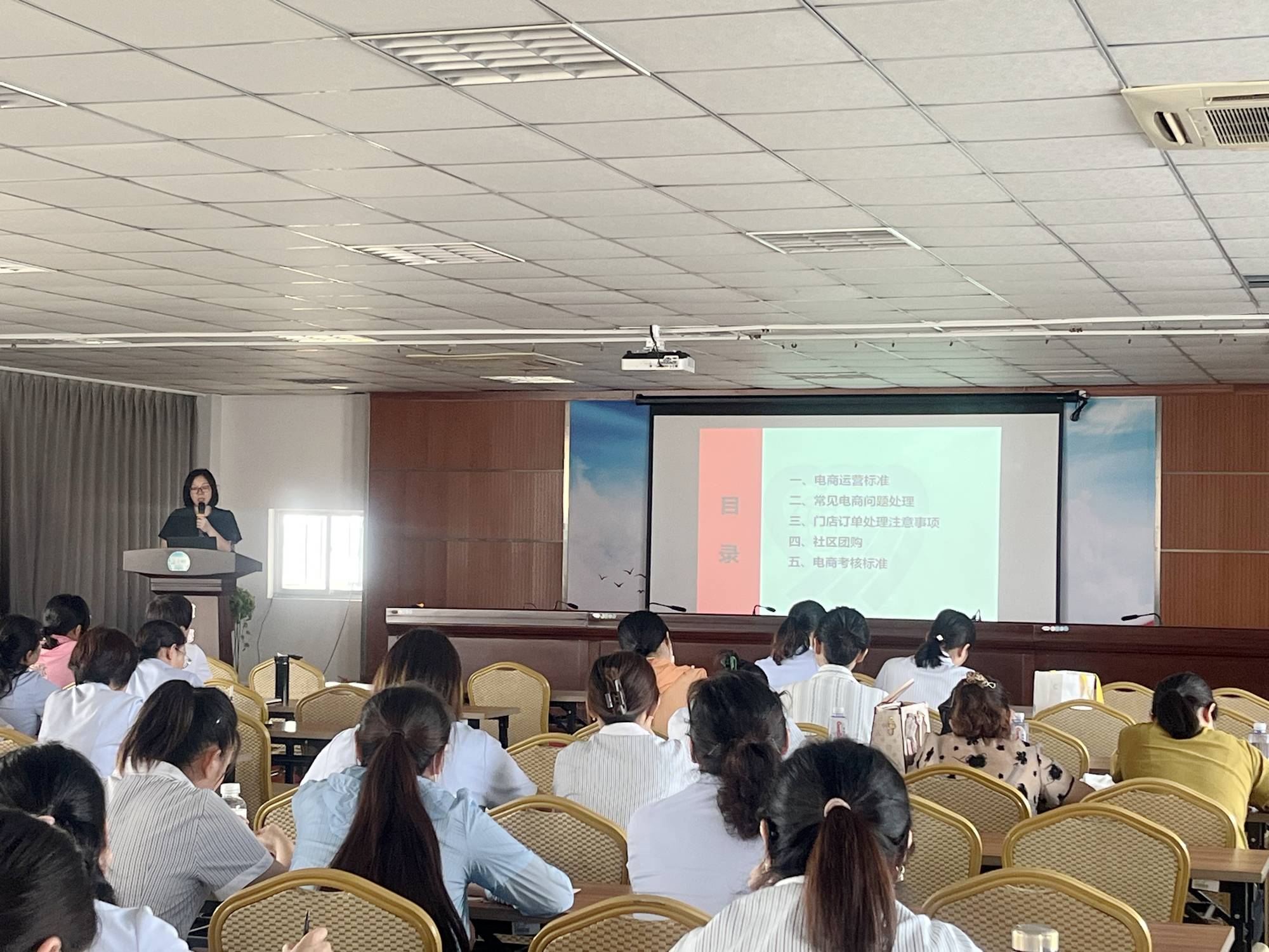 本次培訓由集團信息電商部經(jīng)理吳瑞偉、助理解自萍講授。吳瑞偉結(jié)合集團上半年電商銷售情況分析了電商經(jīng)營管理過程中存在的問題及需要注意的事項,并提出相應(yīng)的解決辦法。解自萍詳細講解了各部位在電商平臺實際運營過程中遇到的問題及解決辦法,主要包括電商運營流程、電商考核標準、常見電商問題處理、門店訂單處理注意事項及社區(qū)團購使用注意事項等內(nèi)容,具有較強的針對性和指導性。