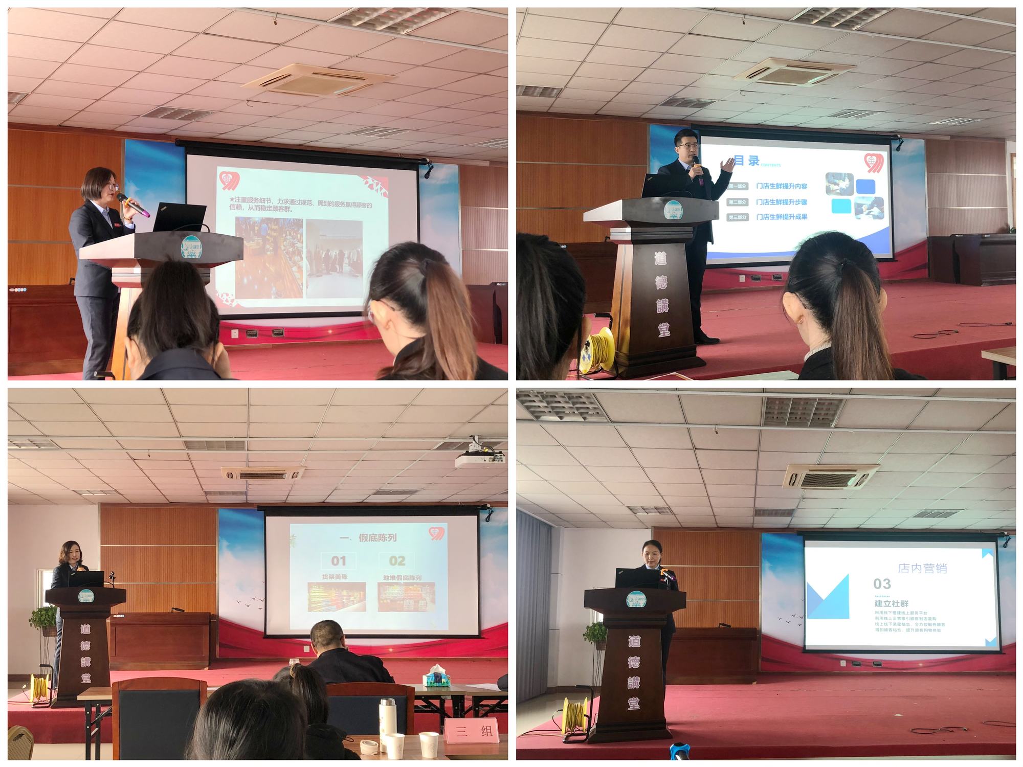 會前,各部門圍繞門店現(xiàn)場管理、商品管理、對客服務、促銷方式、生鮮經營、談判技巧、員工技能提升等內容,挖掘自身工作亮點、經營創(chuàng)新點,形成講解課件,各部門共提報亮點案例73篇。經初步評選,選拔出優(yōu)秀亮點案例15篇進行分享。