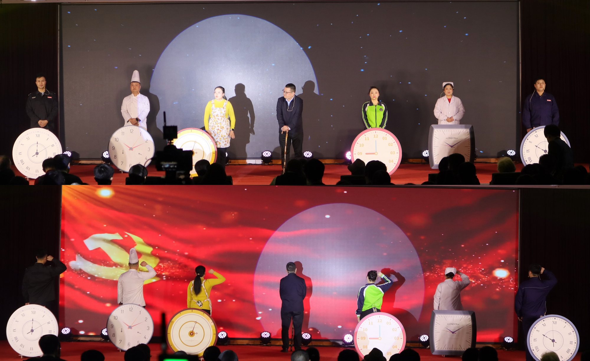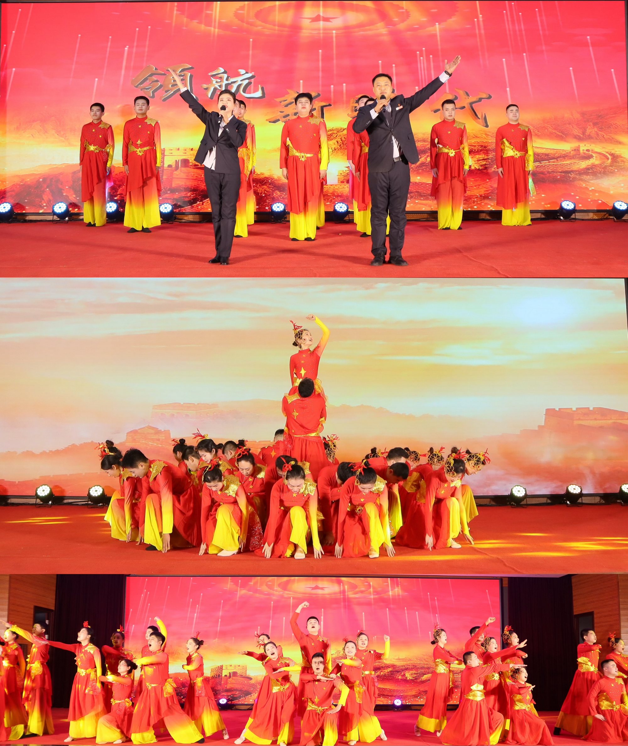 本場晚會的成功舉辦,離不開臺上演出人員的精彩表演,也離不開臺前幕后工作人員的付出;演員們在不影響本職工作的前提下反復(fù)訓(xùn)練、多次彩排,不斷磨合、力求最優(yōu),只為在舞臺上將最好的狀態(tài)和最出色的表演呈現(xiàn)在大家面前;總指揮、總監(jiān)制、節(jié)目創(chuàng)作、節(jié)目編排、會場服務(wù)保障、設(shè)備、錄像、燈光、音響等所有臺前幕后的工作人員,一次次召開會議商討晚會的每一個細(xì)節(jié),相互之間通力合作為這場晚會保駕護(hù)航,臺下的掌聲和直播間破56萬的點贊數(shù),是對他們辛勤付出的最大支持和鼓勵。