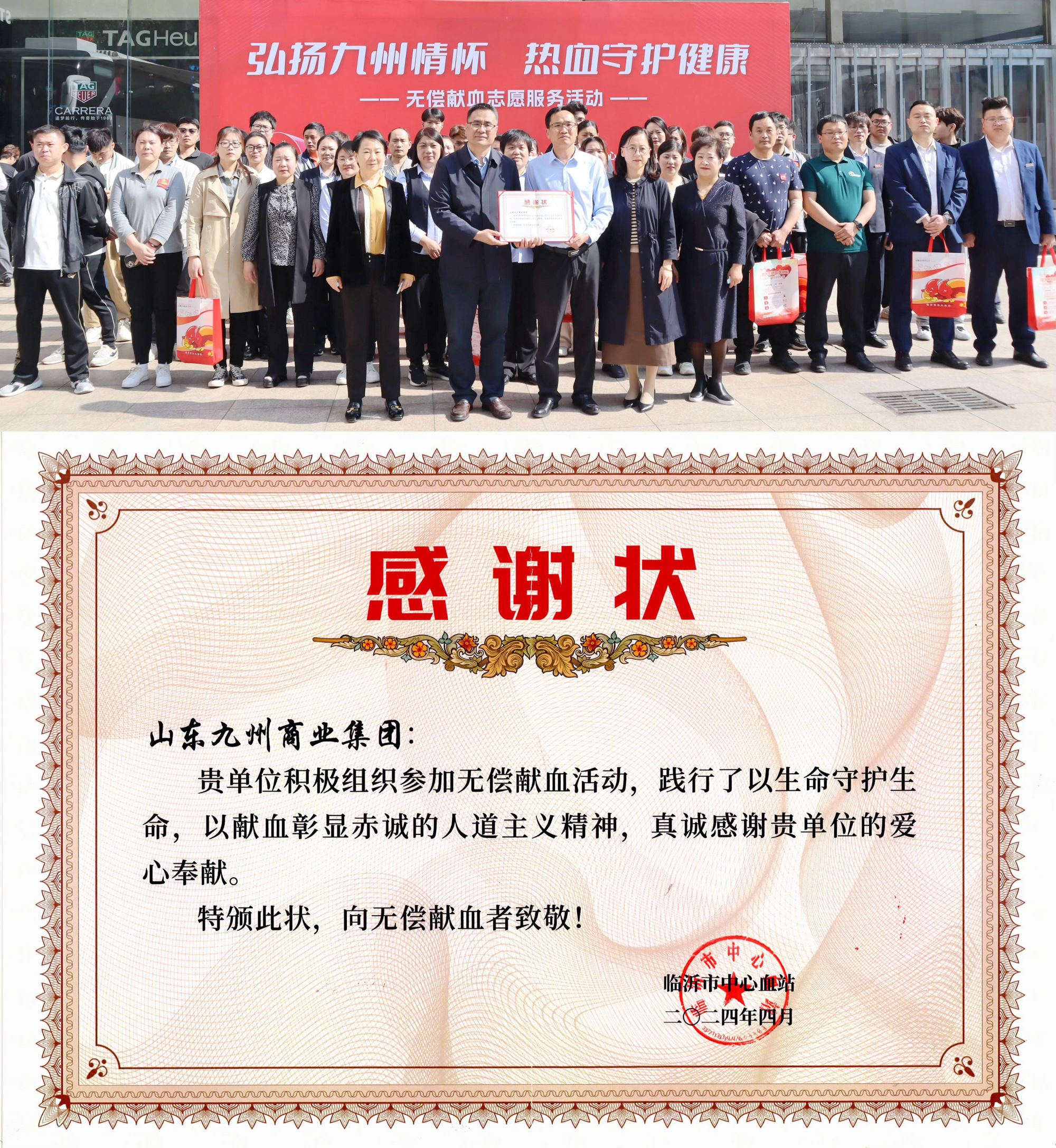 4月26日上午,集團(tuán)聯(lián)合臨沂市中心血站在九州商業(yè)大廈解放路店門前廣場開展了“弘揚九州情懷 熱血守護(hù)健康” 無償獻(xiàn)血志愿服務(wù)活動。來自各單位、各崗位的員工積極響應(yīng),踴躍報名,以實際行動支持社會公益事業(yè)。臨沂市中心血站黨委委員、副站長萬明光,集團(tuán)工會主席周蘭友出席了活動啟動儀式。