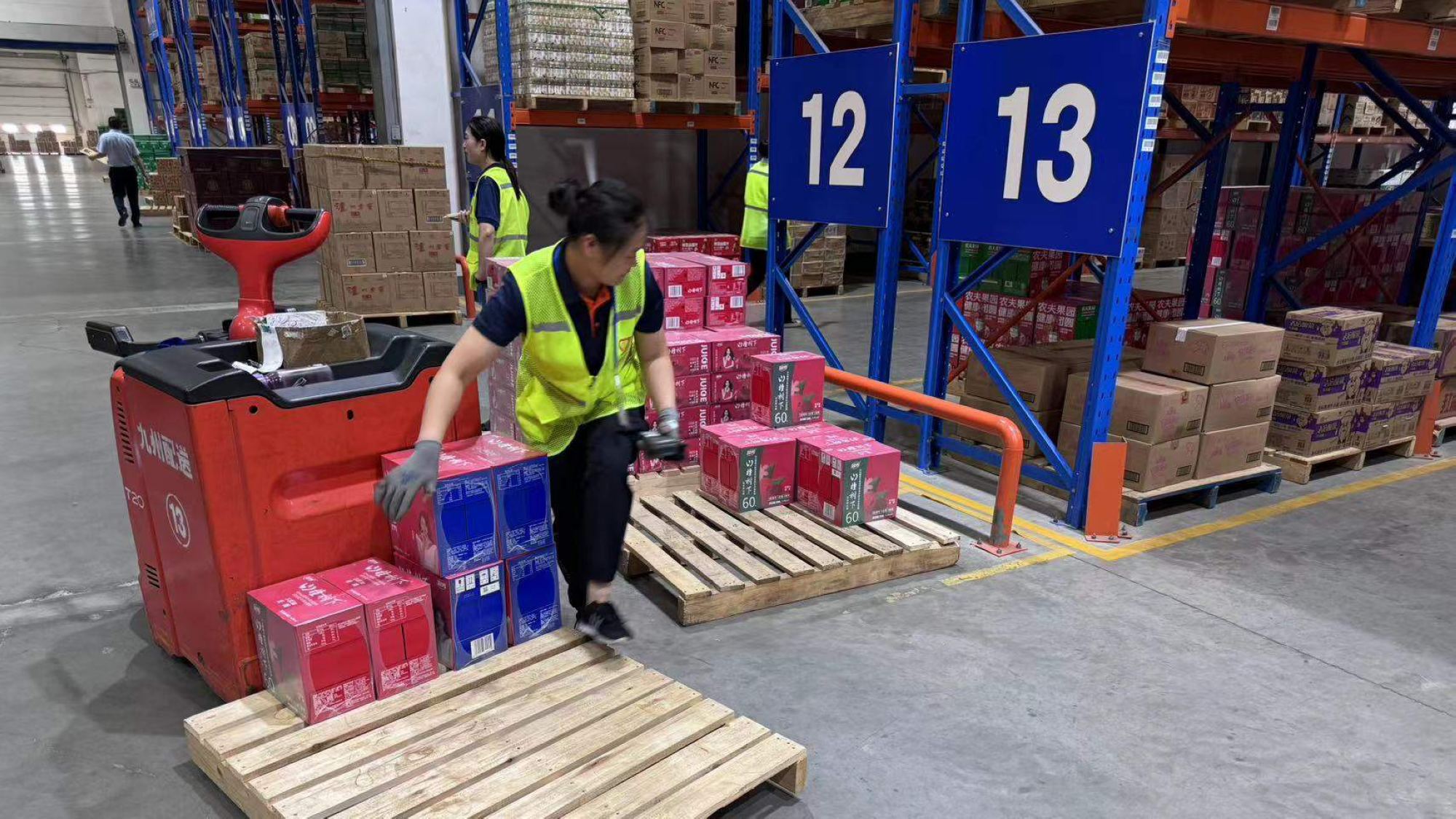 8月16日上午,超市公司在配送中心開(kāi)展了揀貨技能比賽,配送中心共30名員工參加。比賽中,參賽員工駕駛電動(dòng)托盤(pán)車(chē),根據(jù)手持終端隨機(jī)分配的任務(wù),在規(guī)定的時(shí)間內(nèi)完成指定揀貨任務(wù),將貨物送至指定出貨區(qū)域。綜合考察員工揀貨的效率和精準(zhǔn)度。經(jīng)過(guò)角逐,配送部解學(xué)梅、焦守香、朱孟銀分別獲得本次比賽第一、二、三名。