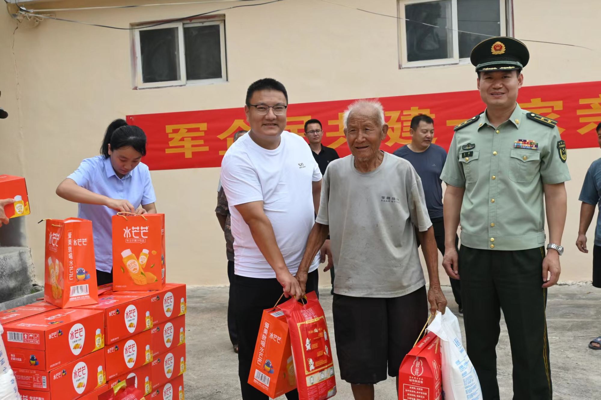 9月5日,超市公司金雀山茅臺專賣店志愿者們攜手臨沂武警支隊來到蒙陰縣張家樓村,為困難村民送去中秋節(jié)禮。慰問過程中,志愿者們與村領導了解困難村民情況,將中秋月餅、米面、飲料等節(jié)日禮品親手送到困難村民手中,為村民送去節(jié)日的祝福。