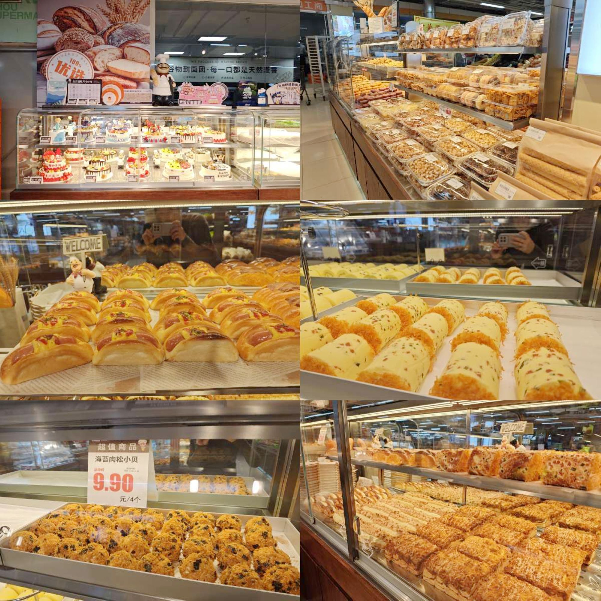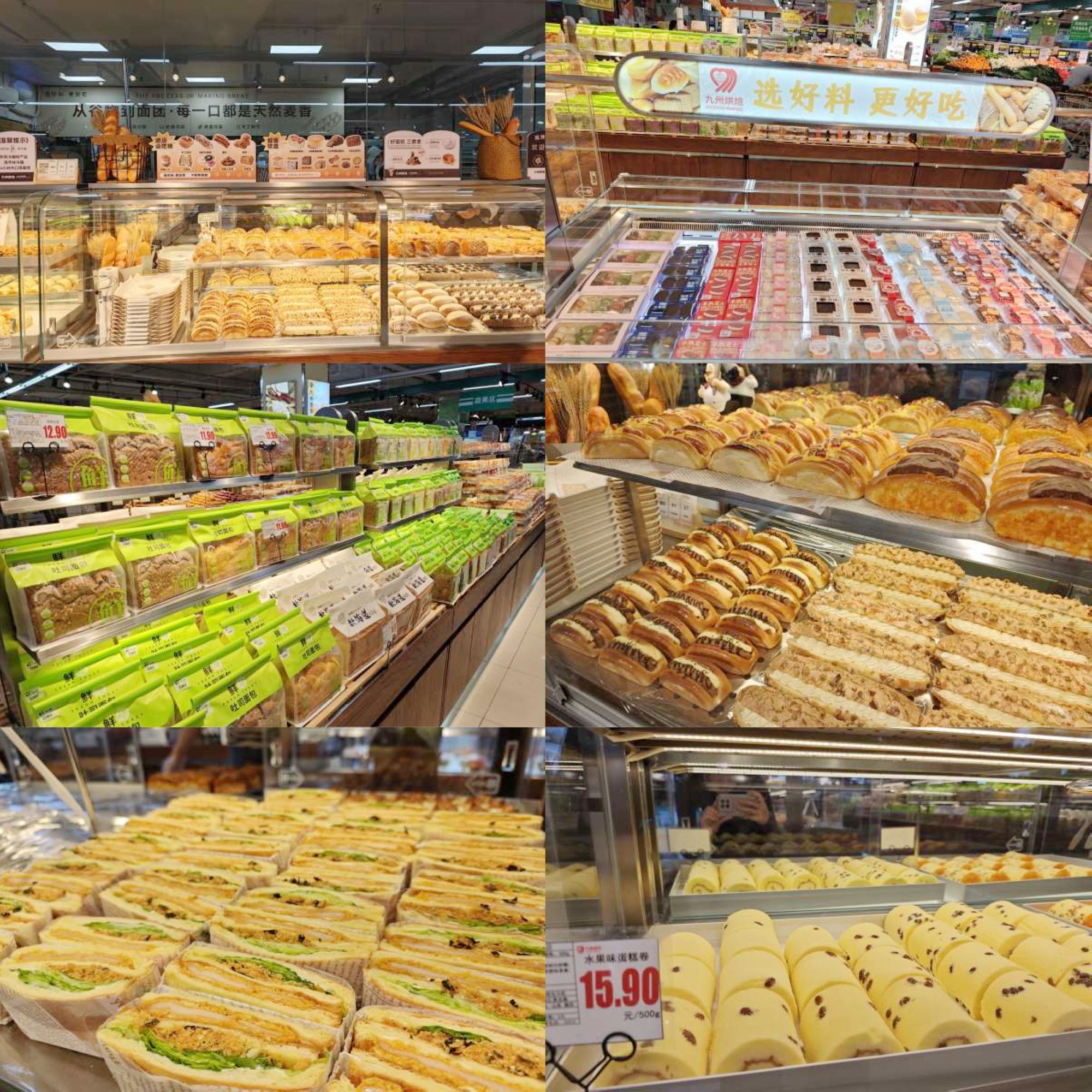 為讓更多的顧客享受到九州烘焙系列產(chǎn)品,感受美好“食”光,超市公司決定開設(shè)自營烘焙面包店。九州烘焙東華花園店位于臨沂市沂河新區(qū)香港路與沂河路交匯九州超市內(nèi),經(jīng)營面積70余平方米。開業(yè)當(dāng)天,店內(nèi)各式面包糕點(diǎn)種類豐富,現(xiàn)場加工類產(chǎn)品60余種,包括裱花生日蛋糕在內(nèi)的糕點(diǎn)類產(chǎn)品40余種,從現(xiàn)烤類肉松卷、豬扒包、奧利奧可可、芝士肉松包、核桃馬里奧到吐司類雜糧吐司、紅豆吐司再到披薩類、三明治類,商品豐富多樣,能有效滿足家庭早餐、下午茶、兒童零食等多場景需求。店內(nèi)所有產(chǎn)品使用優(yōu)質(zhì)原材料,堅(jiān)持天然無添加;現(xiàn)烤熱賣產(chǎn)品當(dāng)天現(xiàn)烤現(xiàn)賣,當(dāng)日出清,確保新鮮健康。