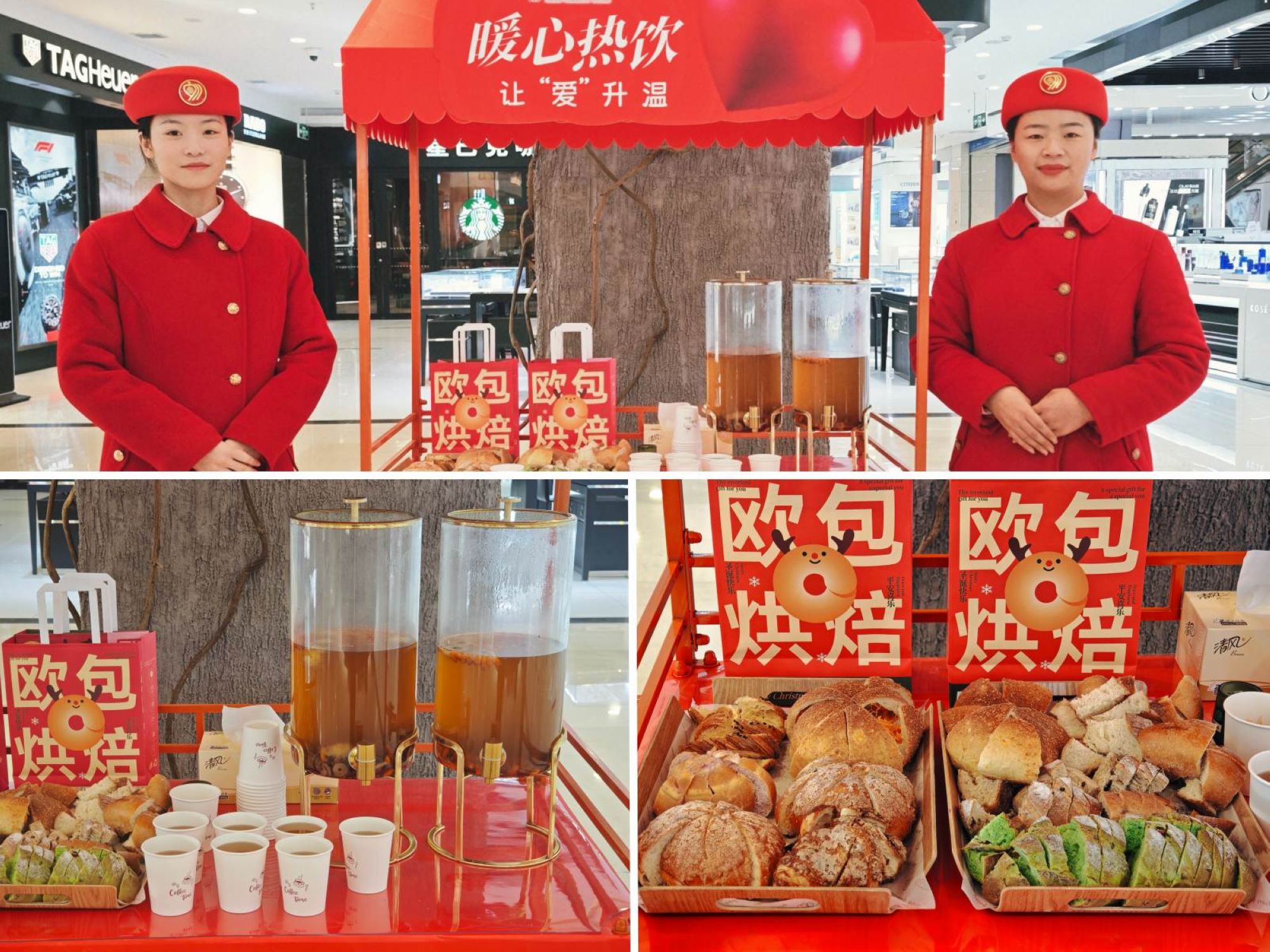 活動現(xiàn)場布置了以紅色為主題的暖心熱飲站,備有菊花去火茶、雪梨潤喉茶、生姜暖胃茶等熱飲,搭配歐包烘焙小面包供顧客免費品嘗。工作人員面帶微笑,為往來顧客遞上一杯杯溫熱的茶飲,讓顧客在購物之余感受到實實在在的關(guān)懷,也讓九州商業(yè)大廈成為冬日里的“溫暖坐標”,為顧客驅(qū)走冬日里的嚴寒冷意。