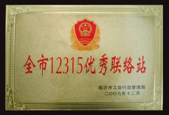 2009年12月九州商業(yè)大廈12315聯(lián)絡站被臨沂市工商局評為“全市12315優(yōu)秀聯(lián)絡站”。 九州商業(yè)大廈12315聯(lián)絡站自2008年2月建立以來,在各級領導和上級職能部門的指導幫助下,一直把凈化消費市場、維護消費者合法權益當作自己的責任和義務,杜絕假冒、誠實守信、依法經(jīng)營,把商品質量與企業(yè)信譽和發(fā)展緊密相連,與臨沂市工商局密切配合,全心全意為消費者營造一個放心消費的購物場所。山東省工商總局局長李華理、消保處領導及萊蕪、淄博、棗莊、寶雞等工商系統(tǒng)曾多次前來九州大廈12315聯(lián)絡站進行參觀、學習、指導。