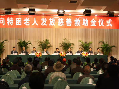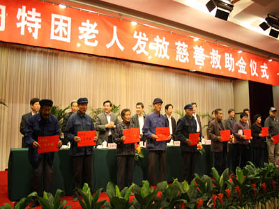在我省第23個(gè)老人節(jié)和“九九”重陽節(jié)之際,集團(tuán)與市老齡委、市慈善總會(huì)、臨沂日報(bào)報(bào)業(yè)集團(tuán)等單位聯(lián)合舉行了“向特困老人發(fā)放慈善救助金”活動(dòng);顒(dòng)上為100名孤寡特困老人和100名百歲老人每人發(fā)放了1000元的救助慰問金。 作為老齡人口大市,我市重視發(fā)展老齡事業(yè),通過加強(qiáng)領(lǐng)導(dǎo),完善社會(huì)保障體系等措施,在全社會(huì)營造了濃濃的敬老愛老助老氛圍。眾多愛心企業(yè)積極參與,推動(dòng)了我市老齡事業(yè)的發(fā)展。作為“臨沂市十大愛心企業(yè)”,集團(tuán)積極參與、支持全市老齡事業(yè)的發(fā)展,用實(shí)際行動(dòng)扶老、助老,向老年人奉獻(xiàn)愛心。 多年來,集團(tuán)在事業(yè)發(fā)展的同時(shí),始終牢記報(bào)效國家、回饋社會(huì)、投身公益的責(zé)任,積極投身慈善事業(yè)。通過開展慈善救助、“慈心一日捐”、“送溫暖”等一系列活動(dòng),積極參與到各類助學(xué)、助殘、賑災(zāi)、濟(jì)困等公益事業(yè)中來。幾年來,集團(tuán)在各項(xiàng)公益活動(dòng)累計(jì)捐款捐物達(dá)數(shù)百萬元,為推動(dòng)全市慈善事業(yè)的發(fā)展做出了重要貢獻(xiàn)。 “老吾老以及人之老”,關(guān)愛老人是我們中華民族的傳統(tǒng)美德,也是我們?nèi)鐣?huì)的共同責(zé)任。集團(tuán)此次向特困老人發(fā)放慈善救助金活動(dòng)是集團(tuán)用實(shí)際行動(dòng)關(guān)愛老人的具體體現(xiàn),有利于喚起全社會(huì)對(duì)尊老敬老的重視,有利于在全社會(huì)樹立尊老、敬老、愛老、助老的良好風(fēng)氣。 市委常委、市總工會(huì)主席林祥余,市人大顧問、市慈善總會(huì)名譽(yù)會(huì)長李寶智,市政府副秘書長沈孝生,市民政局局長姜新利,市老齡辦主任聶成新,市慈善總會(huì)副會(huì)長楊本渠,集團(tuán)董事長楊沂城,黨委書記王佐文出席儀式并在主席臺(tái)就坐。