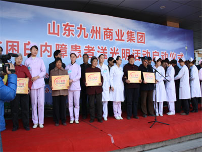 3月29日,山東九州商業(yè)集團(tuán)為貧困白內(nèi)障患者送光明活動(dòng)在市人民醫(yī)院眼科門診樓前舉行啟動(dòng)儀式。該活動(dòng)由集團(tuán)出資60萬為我市600名貧困白內(nèi)障患者提供免費(fèi)手術(shù)。臨沂市慈善總會(huì)副會(huì)長楊本渠、集團(tuán)董事長楊沂城及市有關(guān)單位領(lǐng)導(dǎo)出席啟動(dòng)儀式。 據(jù)了解,本次活動(dòng)由市總工會(huì)、市慈善總會(huì)、共青團(tuán)臨沂市委、市婦聯(lián)、市民政局、市衛(wèi)生局和山東沂蒙晚報(bào)傳媒有限公司主辦,山東九州商業(yè)集團(tuán)、臨沂市人民醫(yī)院承辦。計(jì)劃投入資金60萬元,為全市600名貧困白內(nèi)障患者提供免費(fèi)手術(shù)。定點(diǎn)醫(yī)院設(shè)在臨沂市人民醫(yī)院。凡申請接受免費(fèi)白內(nèi)障手術(shù)的貧困患者,可到所在地民政部門領(lǐng)取《山東九州商業(yè)集團(tuán)貧困白內(nèi)障患者報(bào)名表》,并在表上加蓋村(居委)、鄉(xiāng)鎮(zhèn)(辦事處)公章后,交縣(區(qū))民政局報(bào)市民政局慈善辦,統(tǒng)一安排手術(shù)。 [題圖:集團(tuán)董事長楊沂城在啟動(dòng)儀式上講話]