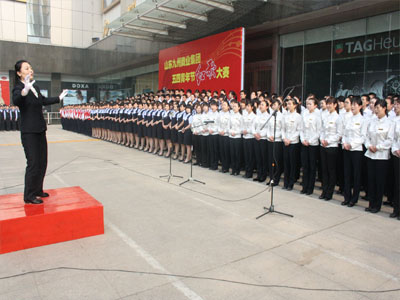 “我們是五月的花海,用青春擁抱時代;我們是初升的太陽,用生命點燃未來。”5月4日早晨,九州大廈門前廣場600多張充滿朝氣的面孔,放歌紅色經(jīng)典,用這種特殊的方式慶祝“五四”青年節(jié)。 《歌唱祖國》、《保衛(wèi)黃河》、《團結(jié)就是力量》、《沒有共產(chǎn)黨就沒有新中國》……一首首膾炙人口的紅歌飛揚在九州大廈前。年輕的一代通過紅歌歌唱祖國、了解祖國,慶祝自己的節(jié)日。 一首紅歌一面旗,一支紅歌一把號。這些凝聚人心、振奮精神、催人奮進的經(jīng)典紅歌,激發(fā)了廣大員工熱愛祖國、無私奉獻,立足本職、勤奮工作的極大熱情。 “五四”的火炬,喚起了民族的覺醒。壯麗的事業(yè),激勵著我們繼往開來。”紅歌大賽在合唱《九州集團之歌》中圓滿結(jié)束,伴著東方初升的太陽,朝氣蓬勃的九州人又投入到了建設(shè)九州美好明天的熱潮中去了。