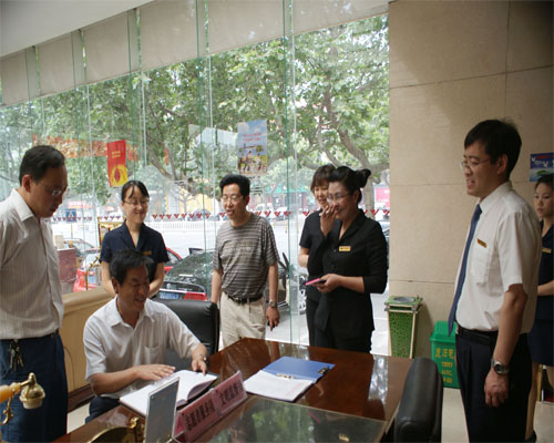 6月22日上午,市創(chuàng)城辦公室領(lǐng)導(dǎo)市委宣傳部副部長李洪彥在臨沂市旅游局副局長王建華等陪同下來到臨沂賓館,視察了臨沂賓館全國文明城市創(chuàng)建工作。 領(lǐng)導(dǎo)一行先后來到賓館房務(wù)部、貴賓樓就創(chuàng)城氛圍的營造、環(huán)境衛(wèi)生、各類創(chuàng)城標(biāo)識和有關(guān)記錄等進行了詳細的檢查指導(dǎo)。對臨沂賓館高度重視細節(jié),周密考慮迎查籌備工作,精益求精,防止出現(xiàn)任何紕漏,以最好的精神面貌迎接測評的做法給予充分肯定和較高評價。