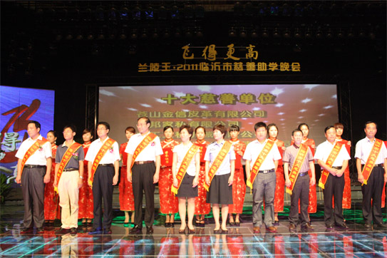 近期,由市委宣傳部、市文明辦、市民政局共同舉辦的2011年度“十大慈善單位”和“十大慈善人物”評選活動出爐。集團榮獲“十大慈善單位”稱號,董事長楊沂城榮獲“十大慈善人物”稱號。16日,主辦單位在臨沂廣電大廈舉辦“2011臨沂市慈善助學(xué)晚會”,并對獲獎單位和個人進行了表彰。
