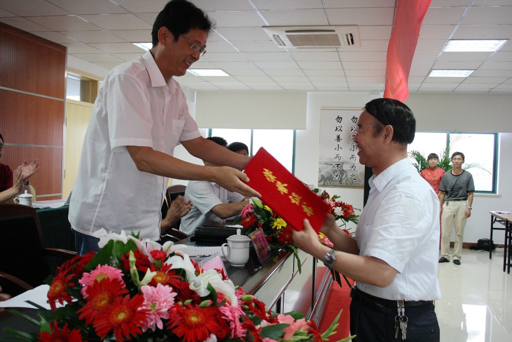 市總工會副主席陳愛平為先進(jìn)黨支部頒發(fā)榮譽(yù)證書