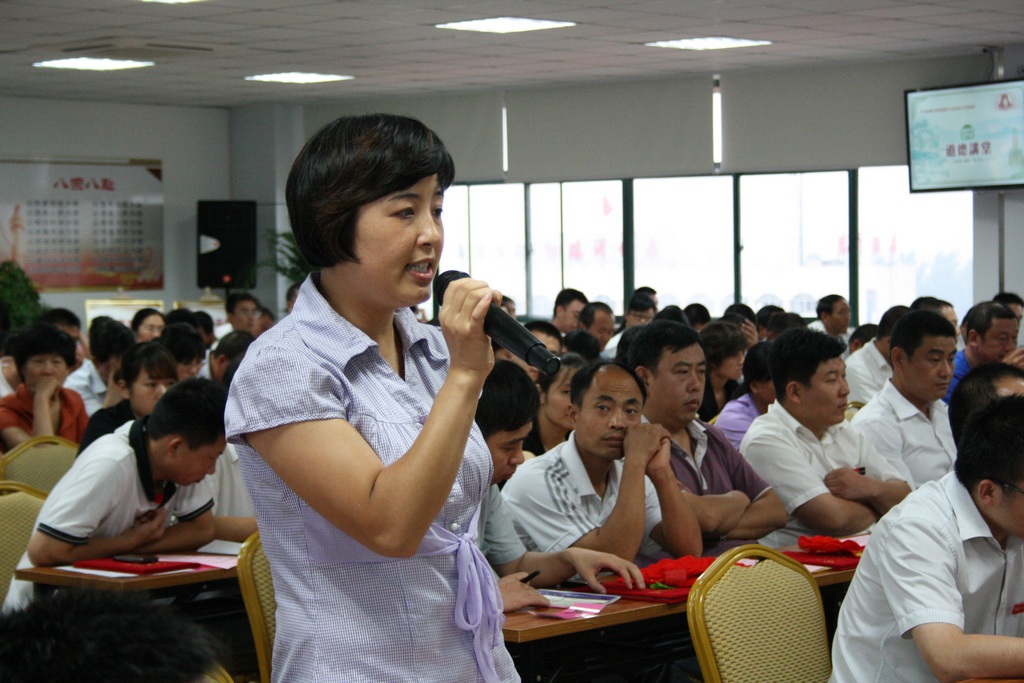 領(lǐng)導(dǎo)與員工一起在道德講堂課上