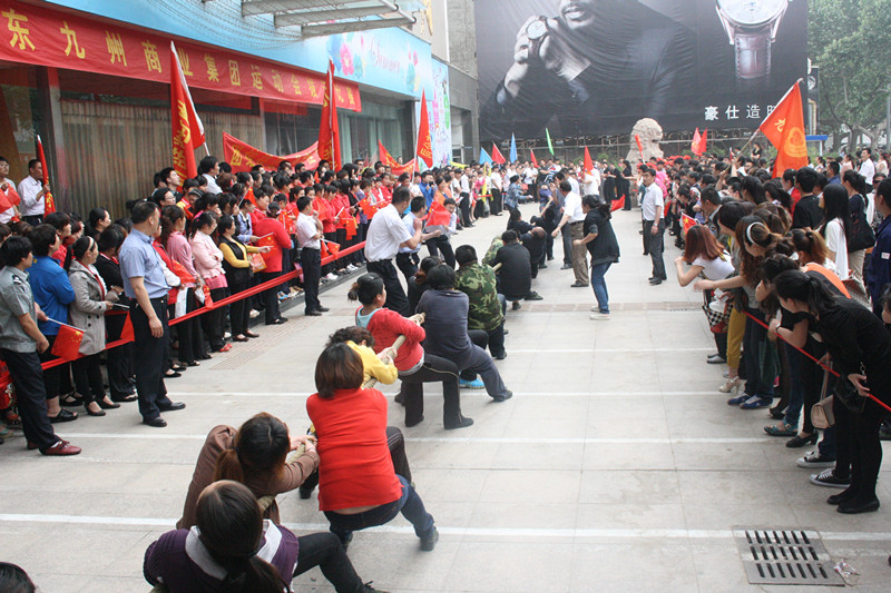 5月23日上午,集團(tuán)運動會拔河比賽項目在九州商業(yè)大廈門前廣場舉行,超市公司、九州大廈、臨沂賓館、九州宜家佳、九州汽貿(mào)等五支代表隊參加比賽。經(jīng)過激烈角逐,超市公司成功衛(wèi)冕,臨沂賓館、九州宜家佳分獲二、三名。比賽現(xiàn)場,廣大員工展現(xiàn)出了積極向上、團(tuán)結(jié)拼搏的良好精神風(fēng)貌。 拔河比賽項目的舉行,拉開了集團(tuán)運動會的序幕。運動會上各單位都精心準(zhǔn)備了豐富多彩的比賽項目,豐富員工生活,鍛煉員工體魄,促進(jìn)交流溝通。