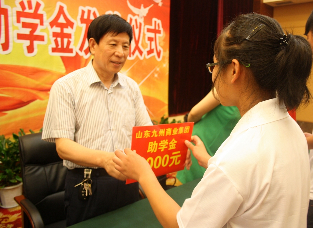 受助學(xué)生 8月15日,九州集團(tuán)2013年度資助困難家庭高考新生助學(xué)金發(fā)放儀式在臨沂賓館大學(xué)酒店舉行。張聞?dòng)、張佃余等市領(lǐng)導(dǎo),楊沂城、王佐文等集團(tuán)領(lǐng)導(dǎo)出席九州助學(xué)金發(fā)放儀式。現(xiàn)場(chǎng)100名優(yōu)秀困難高考新生總計(jì)獲得40萬(wàn)助學(xué)金。 市政府黨組成員、市高新技術(shù)開(kāi)發(fā)區(qū)管委會(huì)主任、市慈善總會(huì)會(huì)長(zhǎng)張聞?dòng)钤谥鷮W(xué)金儀式上講話,對(duì)我集團(tuán)急困難學(xué)生之所急,伸出友愛(ài)之手,連續(xù)多年救助困難家庭學(xué)生給予肯定,對(duì)我集團(tuán)積極參與公益事業(yè),支持我市慈善事業(yè)發(fā)展表示感謝。 集團(tuán)董事長(zhǎng)楊沂城在致辭中,代表集團(tuán)對(duì)在今年高考中取得優(yōu)異成績(jī)的同學(xué)們表示祝賀。對(duì)受助同學(xué)們身處逆境、自強(qiáng)不息、追求夢(mèng)想的拼搏精神,刻苦學(xué)習(xí)、立志成才、不畏困難的吃苦精神給予了充分肯定,勉勵(lì)受助的同學(xué)們珍惜寶貴的學(xué)習(xí)機(jī)會(huì),豐富知識(shí)、堅(jiān)定信念、砥礪品格、磨練意志,努力成為社會(huì)有用之人、祖國(guó)棟梁之材。 受助學(xué)生代表在助學(xué)金發(fā)放儀式上發(fā)言,他們對(duì)我集團(tuán)的大愛(ài)之心、大善之舉,表達(dá)了由衷的感謝,紛紛表示進(jìn)入大學(xué)努力學(xué)習(xí),回報(bào)社會(huì),永遠(yuǎn)不會(huì)忘記九州集團(tuán)的幫助。 九州助學(xué)金截至今年已發(fā)放六屆,六年來(lái)發(fā)放助學(xué)金200余萬(wàn)元,資助優(yōu)秀高考新生600余名。“圓夢(mèng)沂蒙”已成為我市著名的慈善助學(xué)品牌,榮獲“山東慈善獎(jiǎng)最具影響力慈善項(xiàng)目”。 多年來(lái),集團(tuán)在事業(yè)發(fā)展的同時(shí),始終秉承“敬業(yè)報(bào)國(guó) 奉獻(xiàn)社會(huì)”的經(jīng)營(yíng)理念,積極投身慈善事業(yè),勇于承擔(dān)社會(huì)責(zé)任。近年來(lái),在臨沂市慈善總會(huì)的大力支持下,先后組織實(shí)施了“情暖萬(wàn)家”、“朝陽(yáng)助學(xué)”、“夕陽(yáng)扶老”、“康復(fù)助醫(yī)”和“愛(ài)心助殘”等救助工程,累計(jì)為慈善事業(yè)捐款捐物近千萬(wàn)元,為我市慈善事業(yè)的發(fā)展作出了應(yīng)有貢獻(xiàn)。