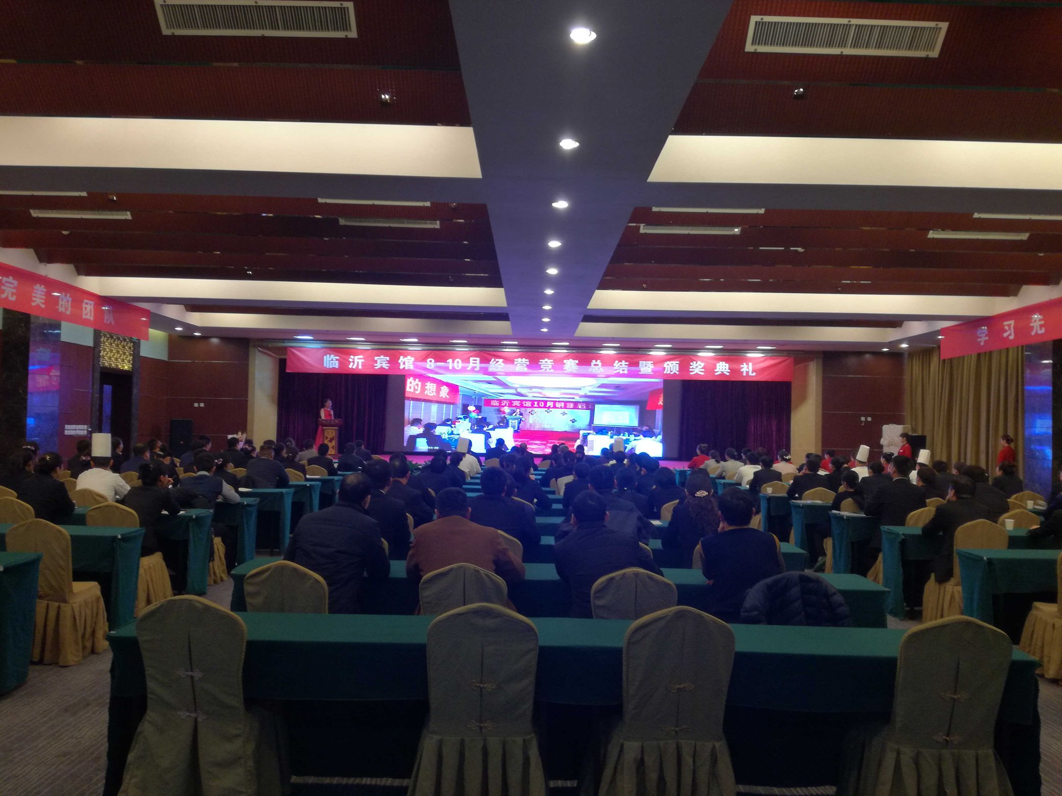 11月22日下午,臨沂賓館8至10月份經(jīng)營競賽總結(jié)大會暨頒獎典禮在臨沂賓館開發(fā)區(qū)店蒙山廳舉行。會上對臨沂賓館8至10月份經(jīng)營競賽活動期間各分店的完成情況進行了通報,對超額完成任務(wù)目標(biāo)的分店和部門進行了獎勵,并對經(jīng)營競賽活動期間表現(xiàn)突出的個人進行了表彰。 自臨沂賓館開展8至10月份經(jīng)營競賽活動以來,全體員工熱情高漲,充分發(fā)揮主觀能動性,創(chuàng)造了升學(xué)宴接待的新高,收到了良好的效果。(臨沂賓館辦公室 王本強)
