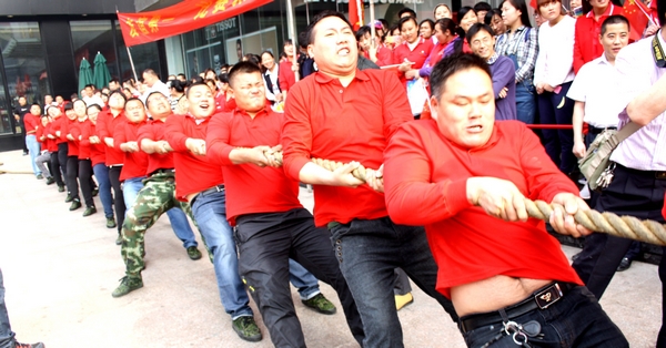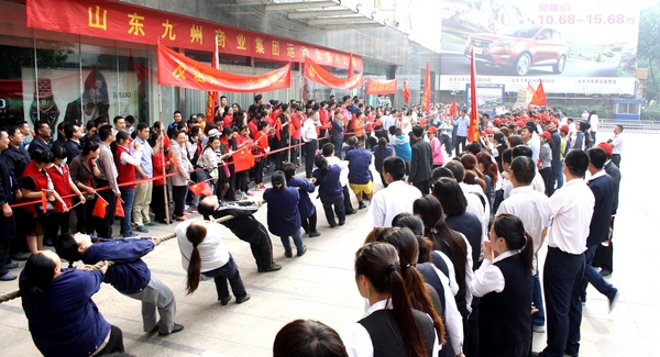 九州大廈代表隊(duì) 凝聚團(tuán)結(jié)的力量,展示協(xié)作的魅力。5月18日,集團(tuán)運(yùn)動(dòng)會(huì)拔河比賽項(xiàng)目在九州商業(yè)大廈門(mén)前廣場(chǎng)舉行。 本次比賽共有各經(jīng)營(yíng)單位和集團(tuán)行政支部組成的六支代表隊(duì)參加。每隊(duì)派出男女各8名運(yùn)動(dòng)員,經(jīng)過(guò)小組循環(huán)賽、半決賽和總決賽,共十輪緊張激烈的比賽,最終,連鎖超市公司代表隊(duì)獲得冠軍,臨沂賓館代表隊(duì)和九州大廈代表隊(duì)分獲二、三名,九州宜家佳代表隊(duì)、汽車(chē)銷(xiāo)售公司代表隊(duì)和集團(tuán)行政代表隊(duì)分列四至六名。 通過(guò)舉辦拔河比賽活動(dòng),不僅豐富了員工的文化生活,也培養(yǎng)了大家團(tuán)結(jié)協(xié)作、拼搏進(jìn)取、永不放棄、堅(jiān)持到底的精神。